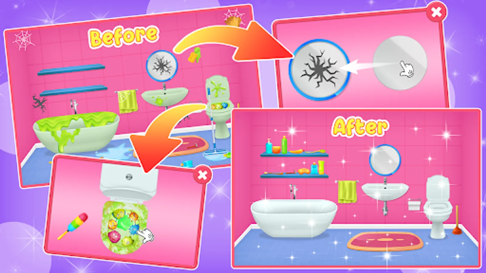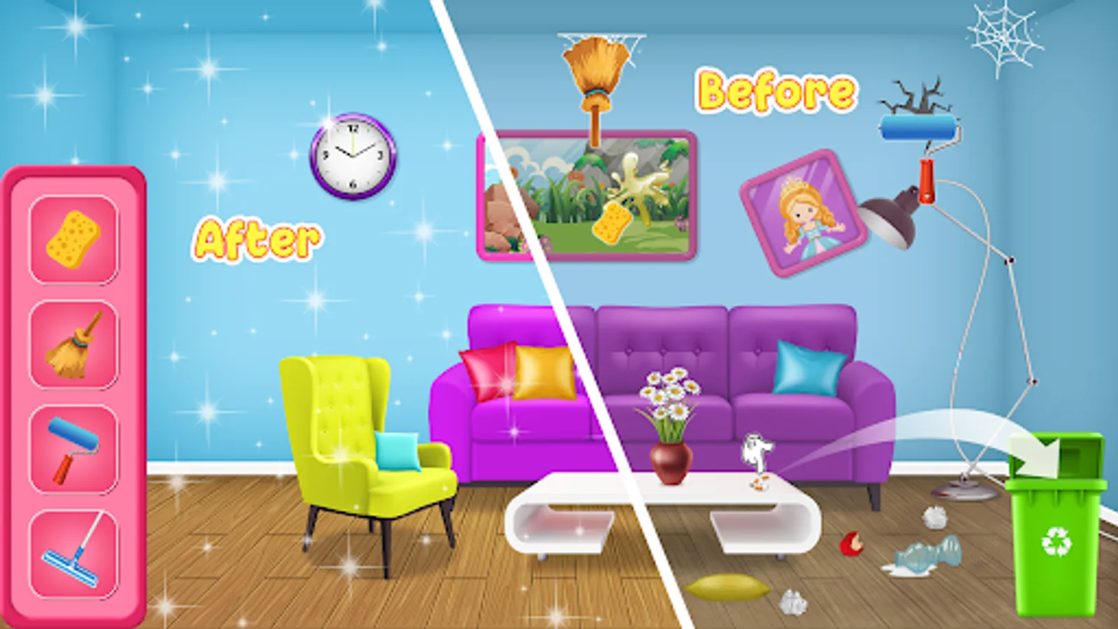 Experience additional excitement with entertaining mini-games! Solve puzzles, match colors, and complete challenges to earn rewards and unlock special items. These mini-games add an extra layer of fun to your cleaning and decorating adventure!