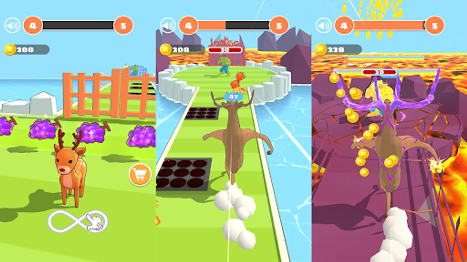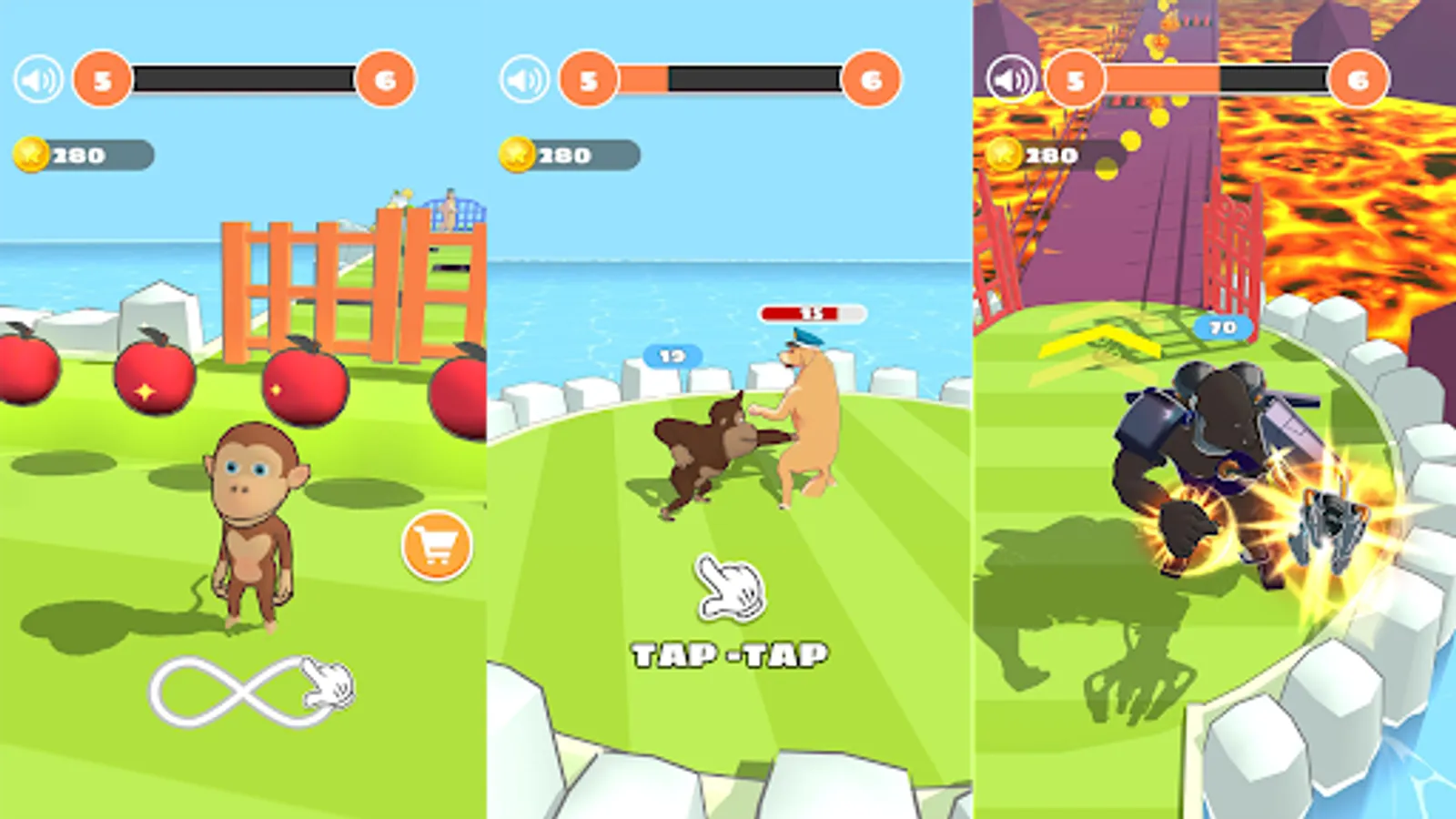 🌟🌟A brand-new transformer race is waiting for you🌟🌟. You need to eat a lot of food to make sure you are strong enough💪. The boss who at the end of the runway is unstoppable, you must beat him and get to win. Collect all food and you will transfer stronger forms🧒🐒🦌. The power of muscle will help you be the champion of the game🏆. Let's go, to win this game as an animal. This is an unbelievable and refreshing experience. Pass through the road that has various obstacles, show your power for the world.