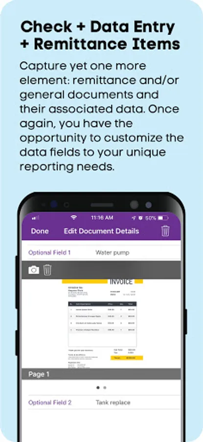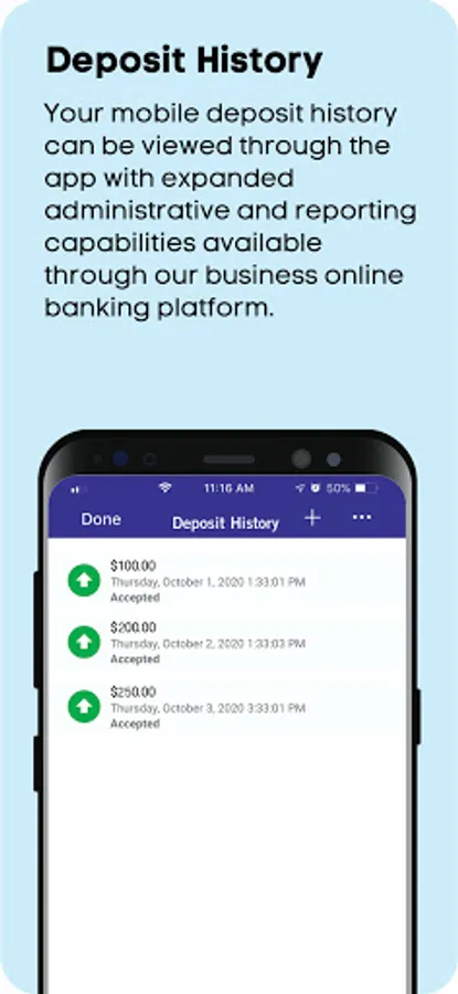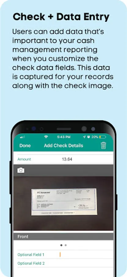 It’s fast and easy to use. The intuitive design of Business Deposit ensures that even first-time users can deposit a check from their Android mobile device — in less than a minute. Its built-in user support includes a tutorial and practice mode that virtually eliminate the need for training or external support.
