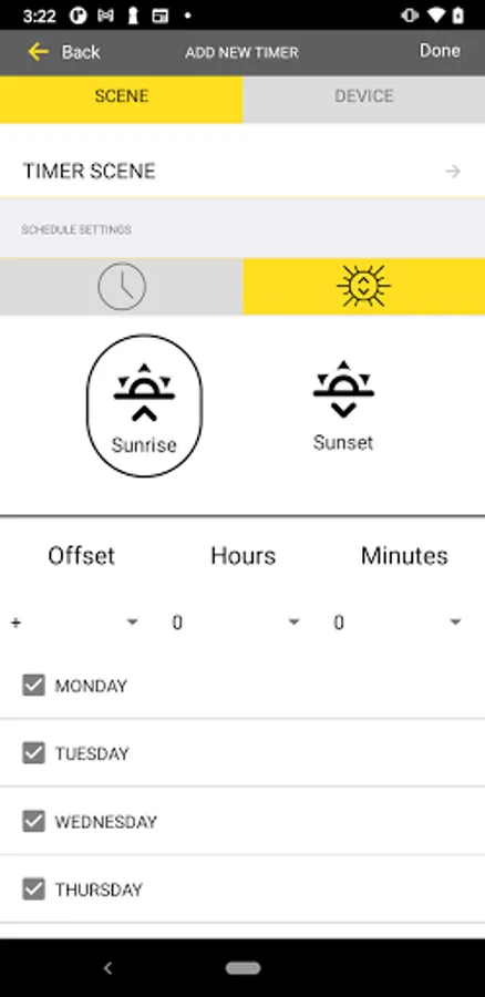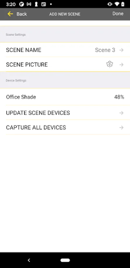 Our dc+b control app lets you create an automation routine, + once setup autonomously raises + lowers your smart shades at the optimal time so your home’s climate is always at its best.
