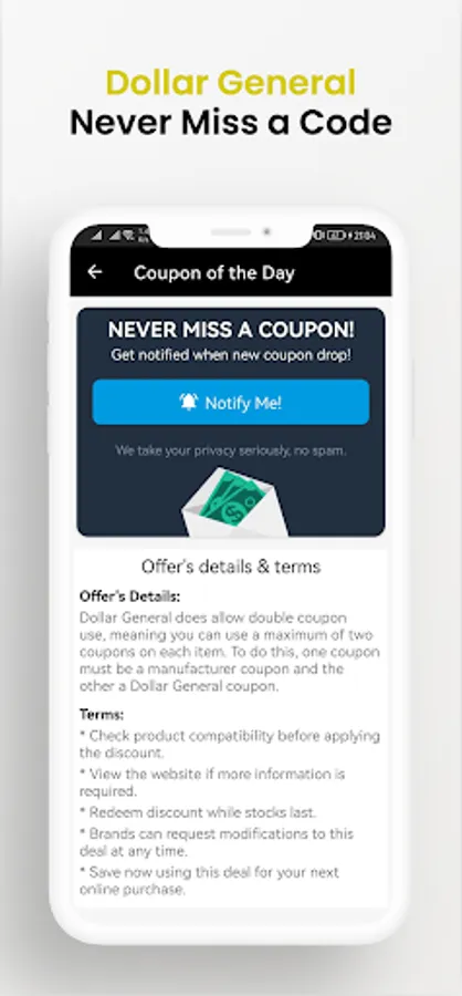 You will find in this useful app many Smart Coupons, promo codes, discounts and great deals for DG.