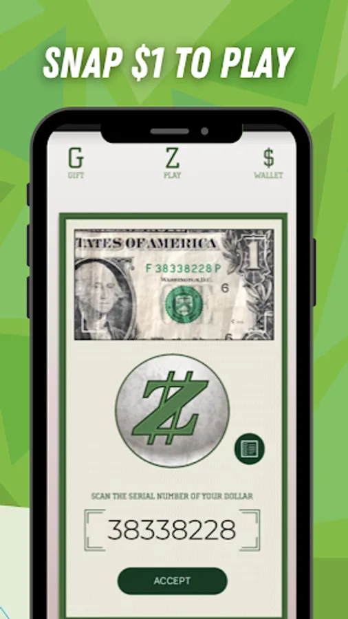 After picking a charity to play for and purchasing your ZingCash. ZingCash is 1-1 digital currency based on the value of a US $1 bill. Next, you scan your dollar's serial number into the game that goes against an algorithm to generate a random number. The member then plays versus another community member. Whichever member has the higher value, based on the random number generated, will then receive the other members $1. The receiving member can choose to play in the $2 challenge or choose to receive and donate. You can play $1 from $2 to $4 to $8 and so forth to $1024. 10% or more of that received value is donated to the charity you played for. A member pays DollarZing .10 cents per click or challenge.