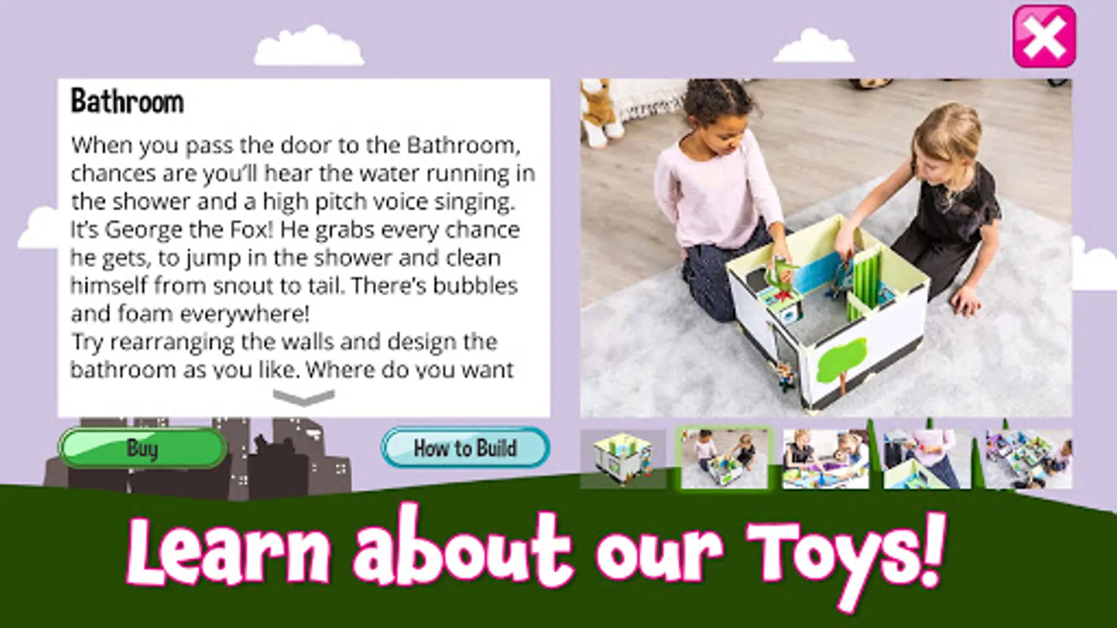In DollsWalls playsets we’ve created a hidden layer of fun, using augmented reality. You can experience the hidden layer, when you access the Magic Lens in the app. Look through the lens and see elements from the playsets come alive. We regularly update the hidden effects in the hidden layer, so your DollsWalls playset will often have new AR elements ready for you to explore.