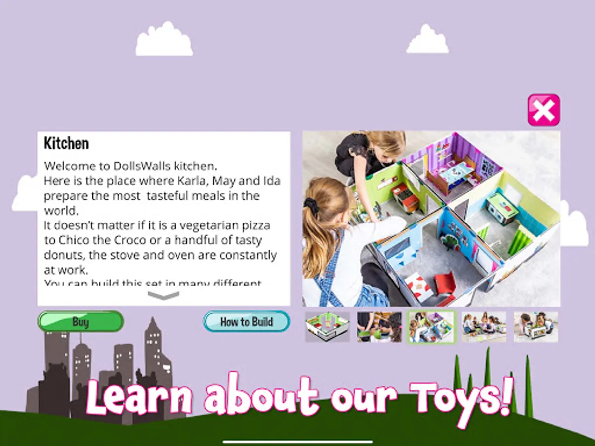 We would like to stimulate children’s love for reading, so we created short stories in digital format in the app. Read them as a goodnight story to small children, or let older kids read themselves and get entertained by our funny and fantastic stories from the DollsWalls universe.