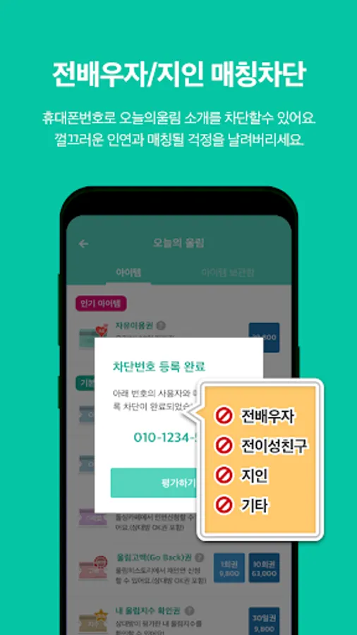 A. No Problem! Only register mobile phone numbers of people you don't want to meet. It provides a function to block acquaintances that are not introduced by today's Woollim relationship with the blocked person.