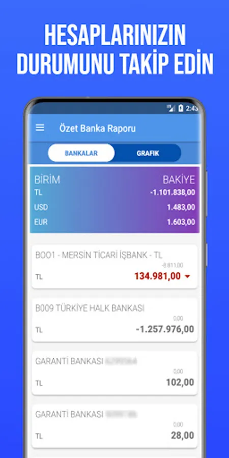 It allows you to track incoming/outgoing records of your bank accounts from a single place. With the integration of 16 popular banks, you can add and track your accounts and make an accounting account. All your banks are with you anytime, anywhere!
