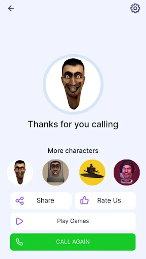 Tap the "Call Skibidi Toilet" button to initiate the fake call.