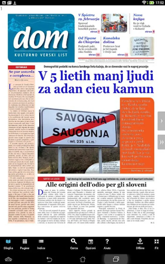 Digital edition of the fortnightly Dom of the Slovenian community in the province of Udine