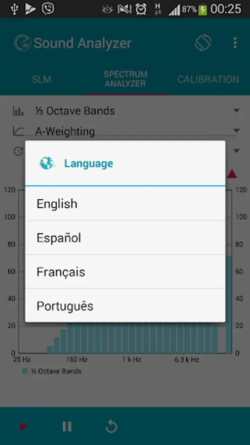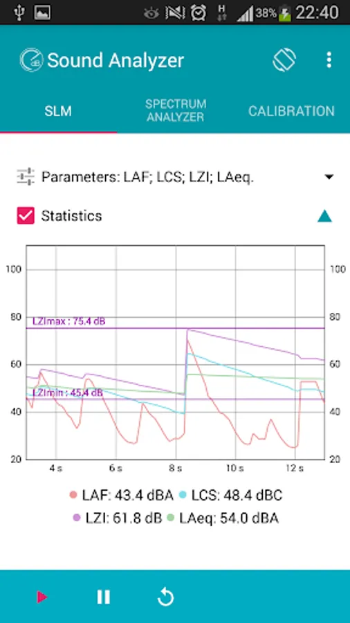 Sound Analyzer App lets you use your smartphone as a Sound Level Meter (SLM) and a Real time Audio Analyzer (RTA). Environmental noise, measured in decibel (dB) can be monitored in real time. The microphone sensitivity is adjustable by means of the calibration menu.
