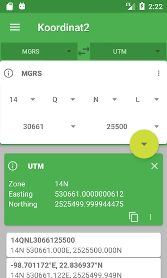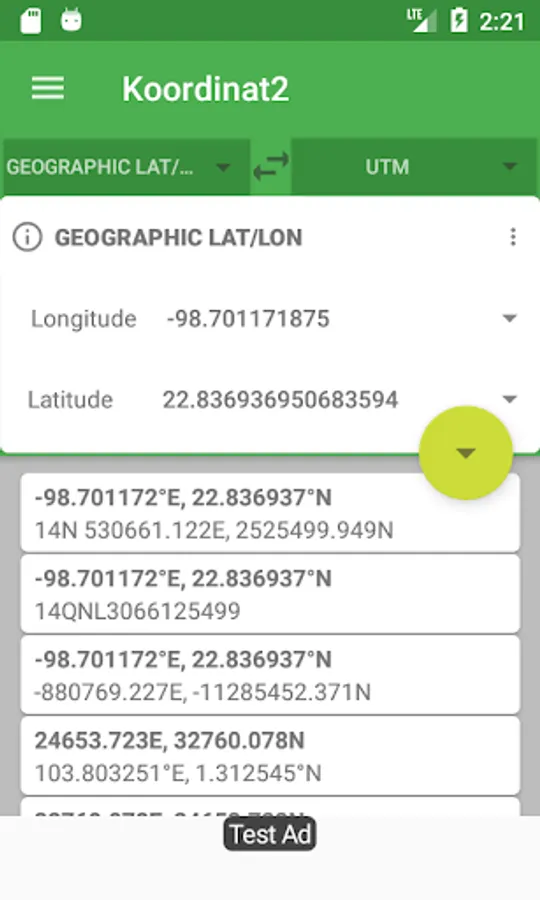 A handy app for converting geo-coordinate points between various coordinate reference systems. The app currently supports Universal Transverse Mercator (UTM), Military Grid Reference System (MGRS), Singapore SVY21, and geographic latitude/longitude systems. It uses the global WGS 84 ellipsoid for the datum only.