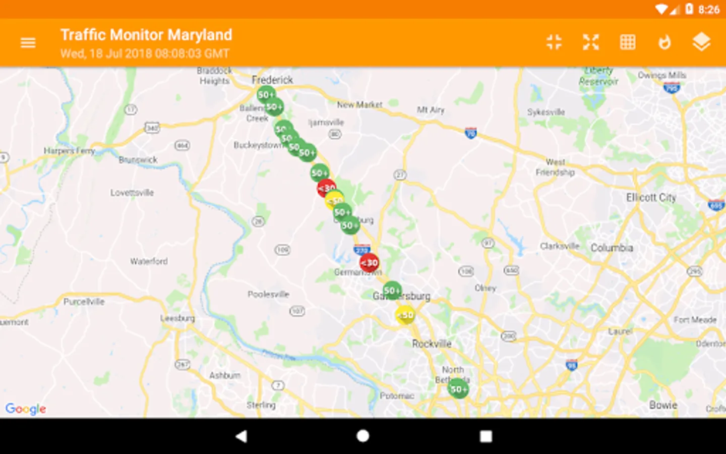 Note: Traffic data source for the app comes from the Maryland Department of Transportation. For more detailed information about the data feeds, visit the source website at https://chart.maryland.gov/DataFeeds/GetDataFeeds
