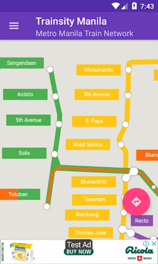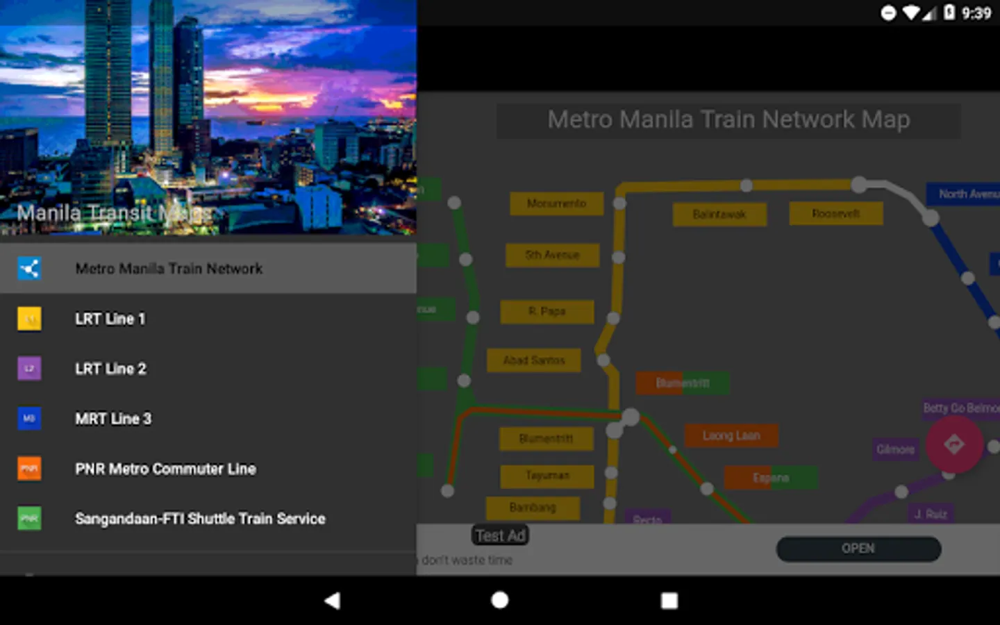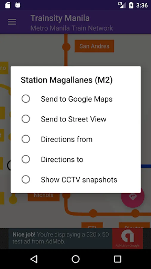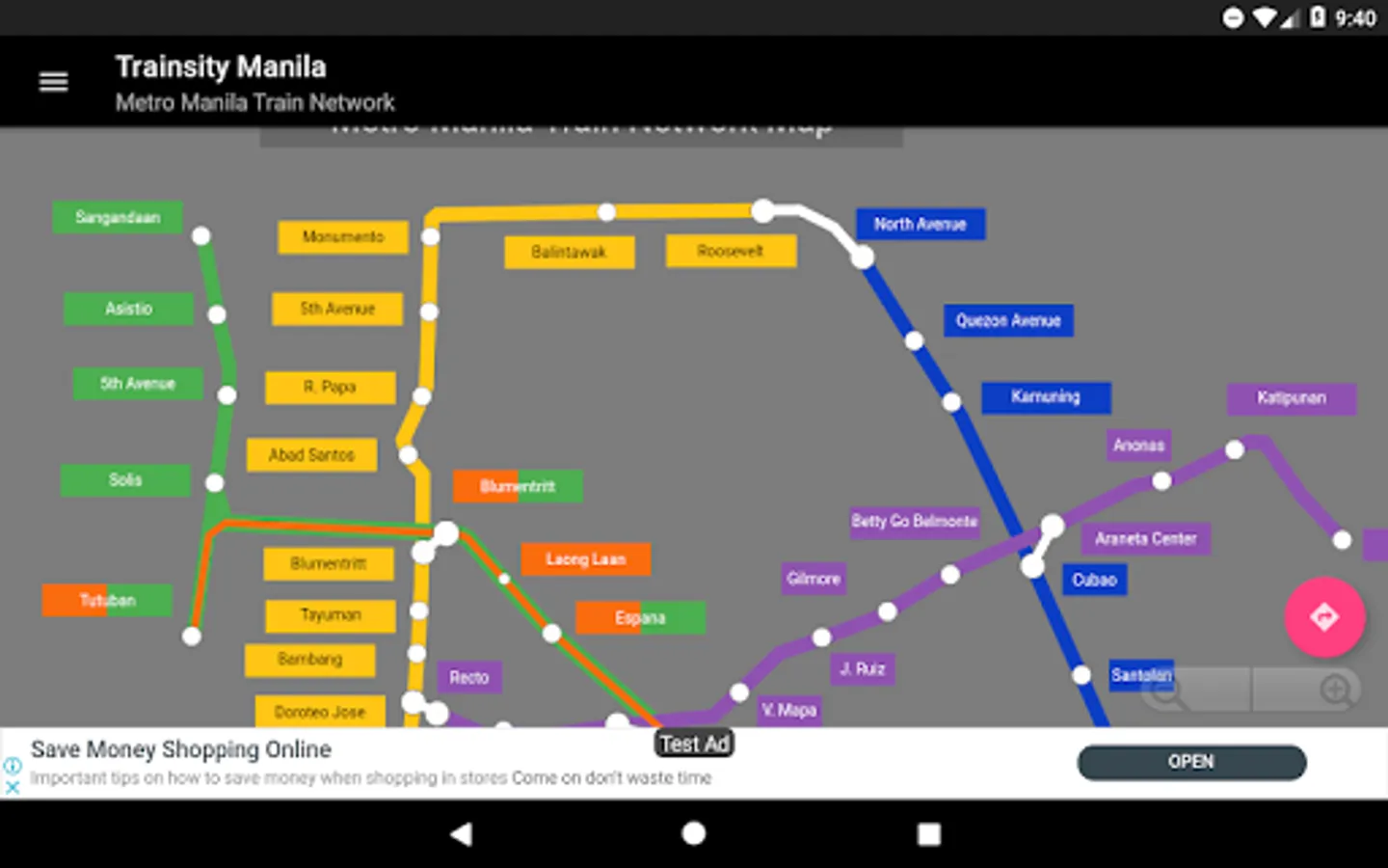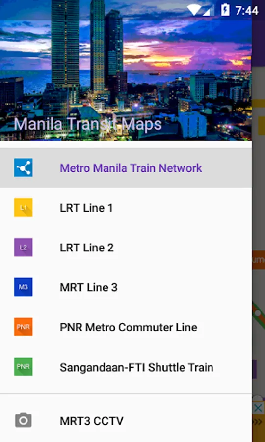 Find your way around the city of Manila using the high resolution vector maps of the MRT-3, LRT-1, LRT-2, PNR Sangandaan-FTI Shuttle Service and PNR Metro Commuter lines. The maps have small file size footprints but with many levels of zoom and can work offline without connecting to the Internet. Users can click the train station labels to open Google Maps or Street View, where they can use all the functions of the Google apps to visualize the surrounding area and/or perform routing for directions. There is also an offline function to calculate the best way to travel from a station to another station with a direction breakdown and estimated timings (which may vary from the actual travelling time). The app is also integrated with a MRT-3 CCTV static snapshot viewer for displaying ticketing and platform areas of all MRT-3 stations.