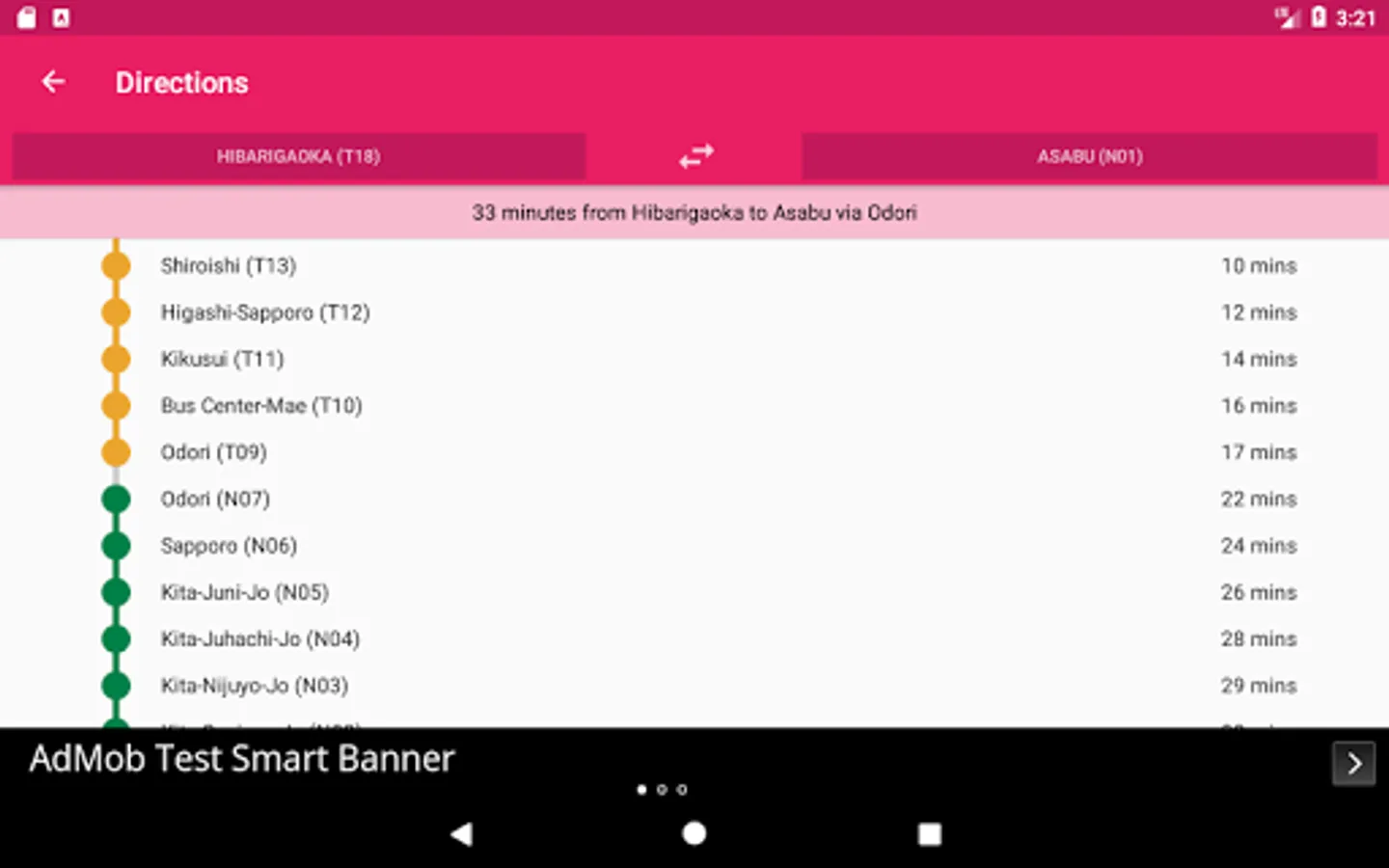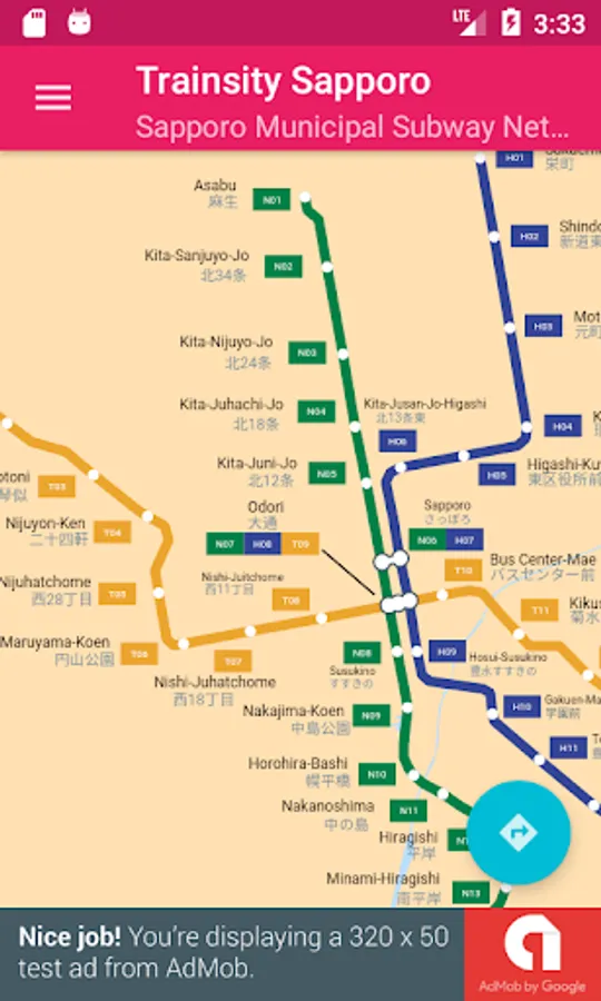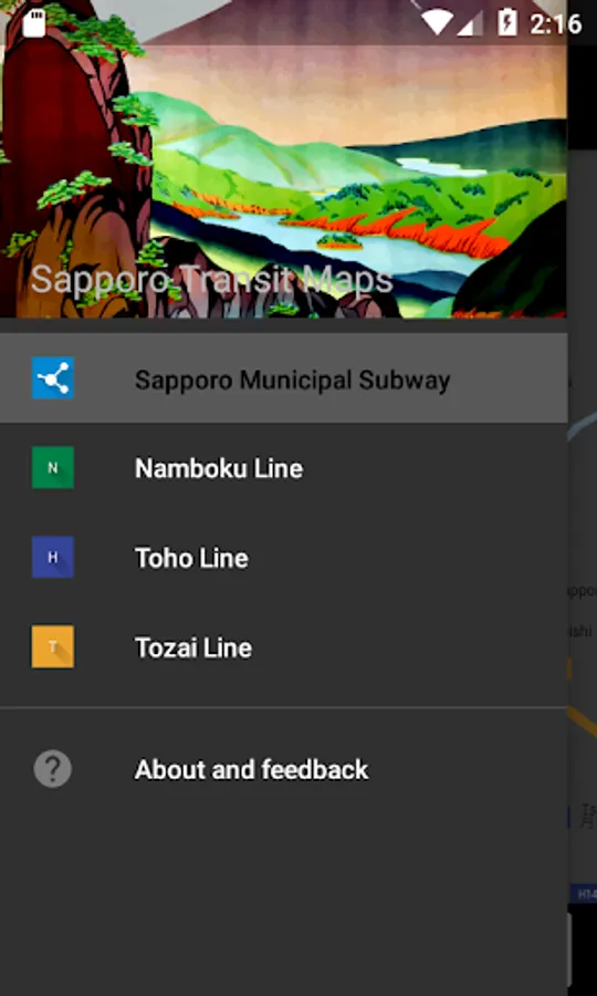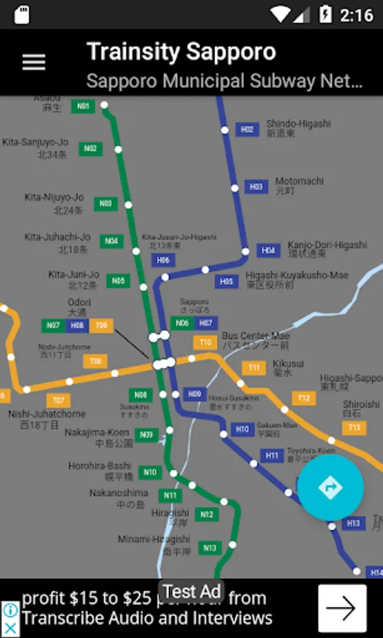 Find your way around Sapporo city's subway using the high resolution vector maps of the train network. The following metro rail lines are available: Namboku, Tozai, and Toho lines. The maps have small file size footprints but with many levels of zoom and can work offline without connecting to the Internet. Users can click the train station box labels to open Google Maps or Google StreetView, where they can use all the functions of the Google apps to visualize the surrounding area and/or perform routing for directions. There is also an offline function to calculate the best way to travel from a station to another station with a direction breakdown and timings (which may vary from the actual travelling time).