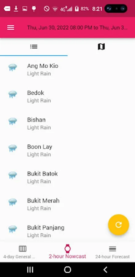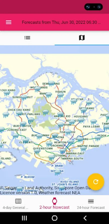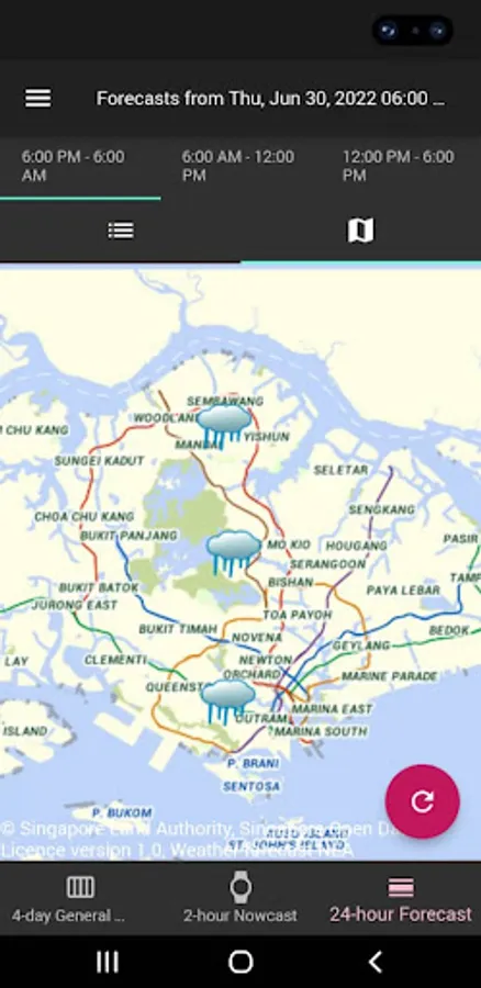 Find out Singapore's weather forecasts for the next 2 hours, 24 hours, and the outlook for the next 4 days as graphic icons on an interactive Singapore OneMap backdrop.