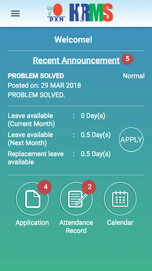 DXN HRMS App enables our employees to check their own DXN Calendar, to view HR Announcement, apply application, perform application approval and update attendance record on the go through the mobile platform.