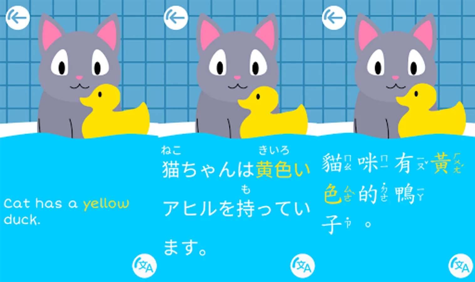 The game's multilingual nature mimics parallel text stories. At any point in the story you can switch to another language to hear a native speaker read the story in their language. The Japanese version contains Hiragana in addition to Kanji to make it simpler for children. Similarly, the Simplified Chinese version contains pinyin and the Traditional Chinese version contains Zhuyin Fuhao (bopomofo).