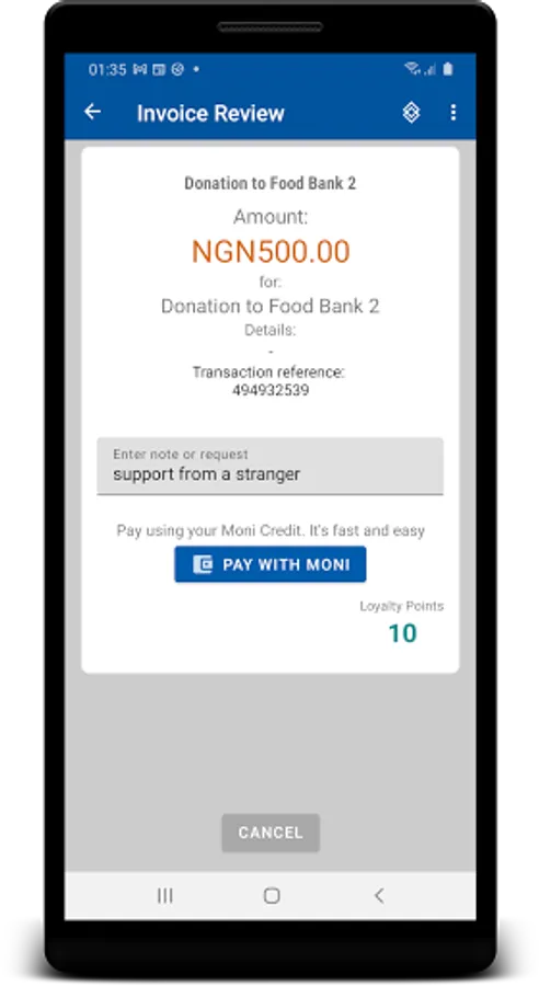 Moni is a smart e-Wallet with additional contactless POS (Point of sale) features.