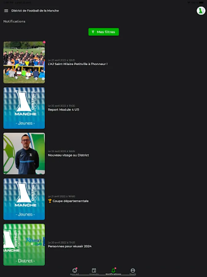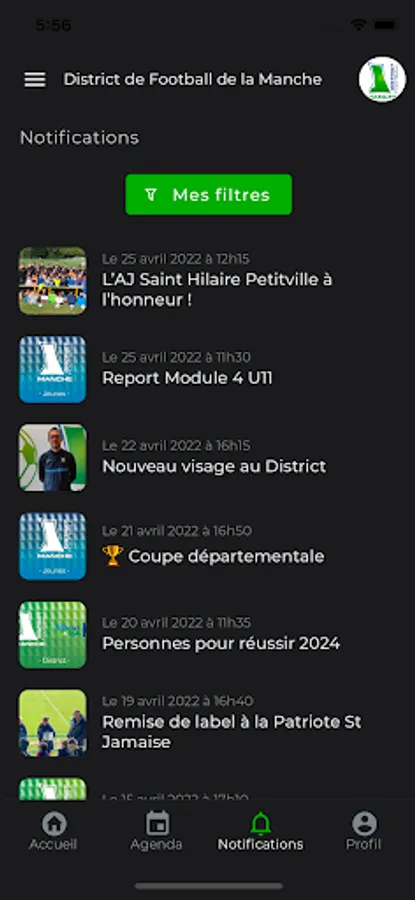 Find all the information (news, events, communications...), and receive real-time last-minute information from the La Manche Football District on your phone!