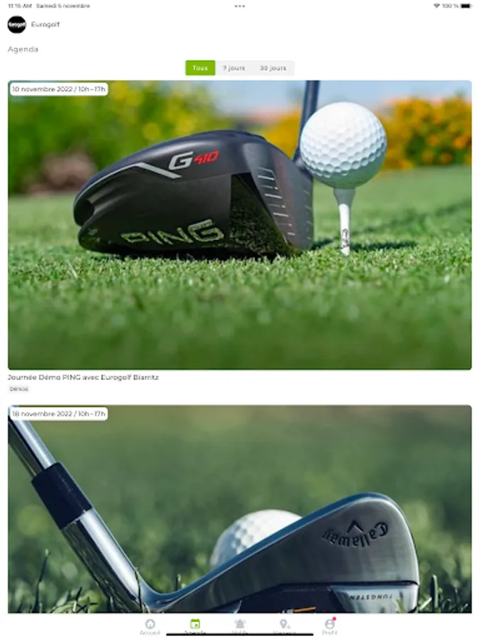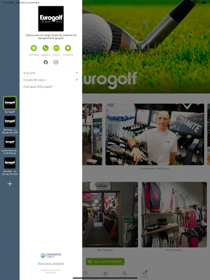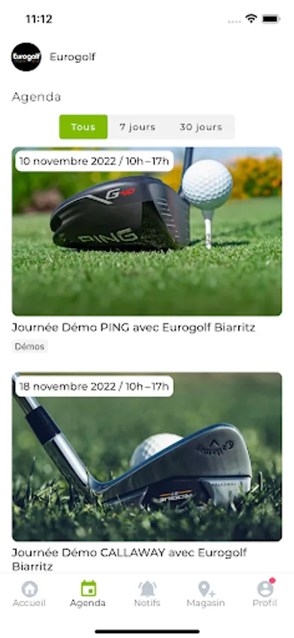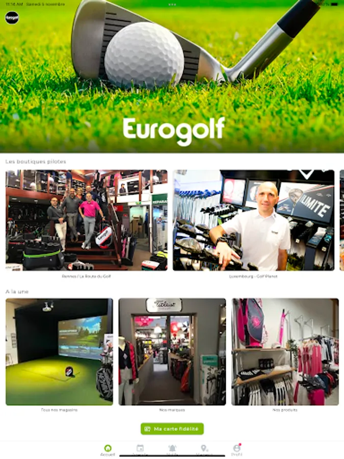 The Eurogolf App gives access to news from the stores of the Eurogolf group. Calendar of fitting and demo days, store news, promotional actions: it's all there. You will be notified of all new equipment, news from the biggest golf brands and all the information relating to the Eurogolf store closest to you. Eurogolf: enthusiasts who give pep to your game!