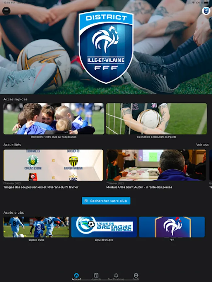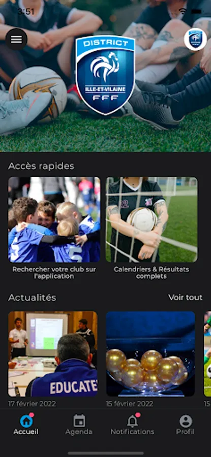 The Ille et Vilaine Football District in your pocket! Find all the information (news, events, communications...), and receive in real time on your phone the last minute information of the District of Ille et Vilaine de Football!