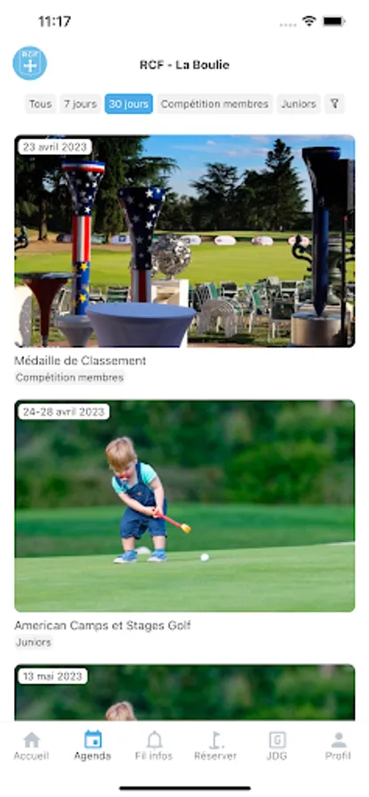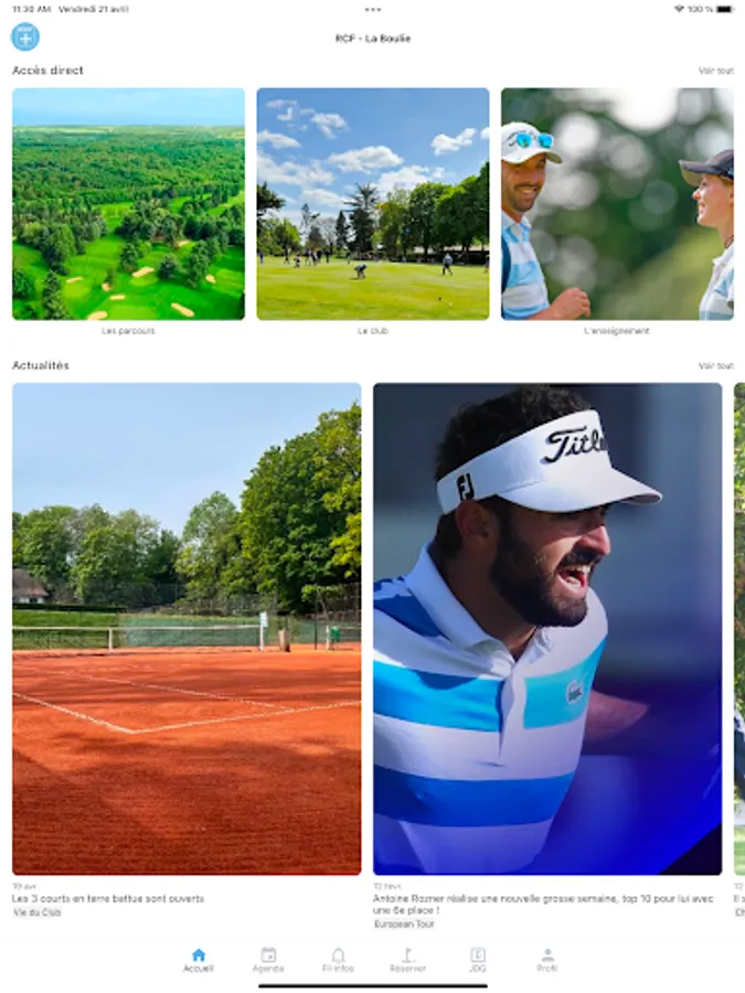 - Discover the news of your club (Club-House, proshop, competitions, etc.)
