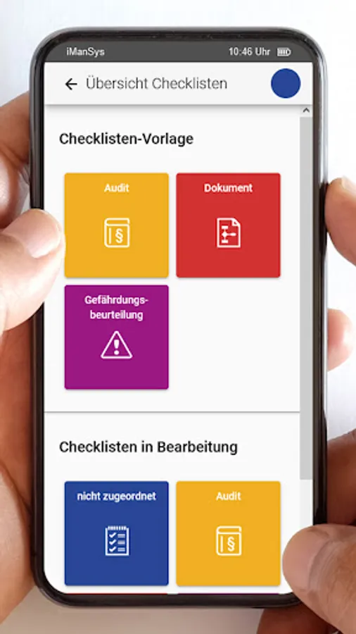 It is also possible to fill out checklists for audits, documents or risk assessments on a mobile basis, with the associated measures being recorded directly. Thanks to the offline mode, you can use some functionalities such as editing checklists even if you do not have internet access - anytime and anywhere. The processing status can later be transferred to the desktop application in online mode and further processed.