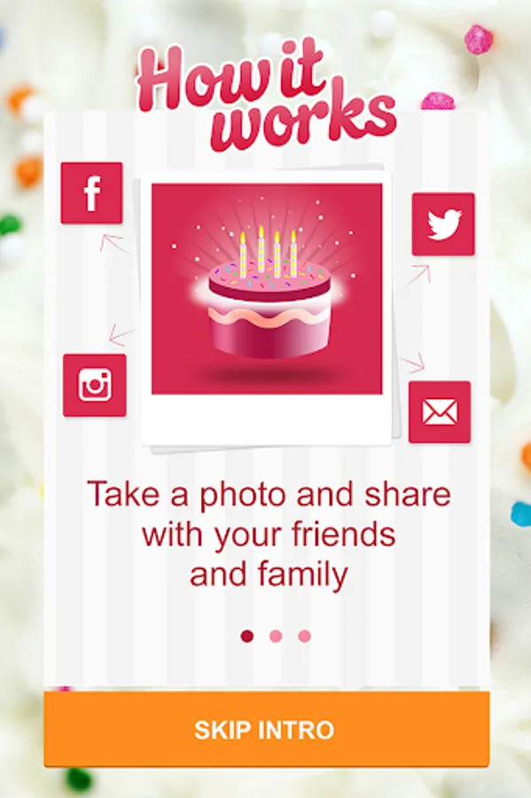 Take pictures to share your special moments with friends and family via Facebook, Twitter, Instagram or email.