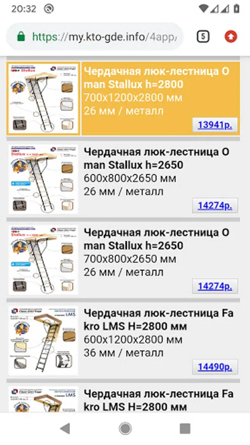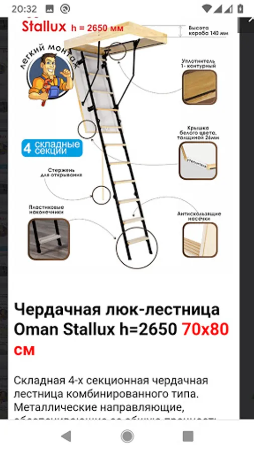 The database contains over 1000 models of folding ladders from leading manufacturers: Fakro, Oman, Fantozzi, Minka and Ladder with descriptions. There is a filter for the selection of stairs according to the required parameters (material, dimensions, degree of insulation, etc.) and an online order form.
