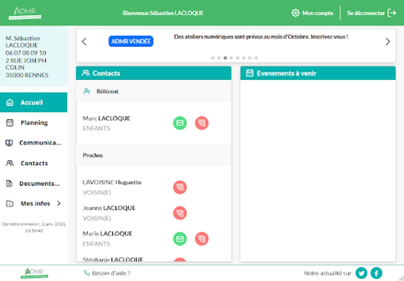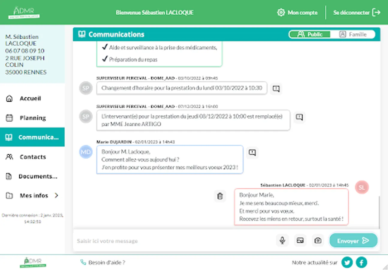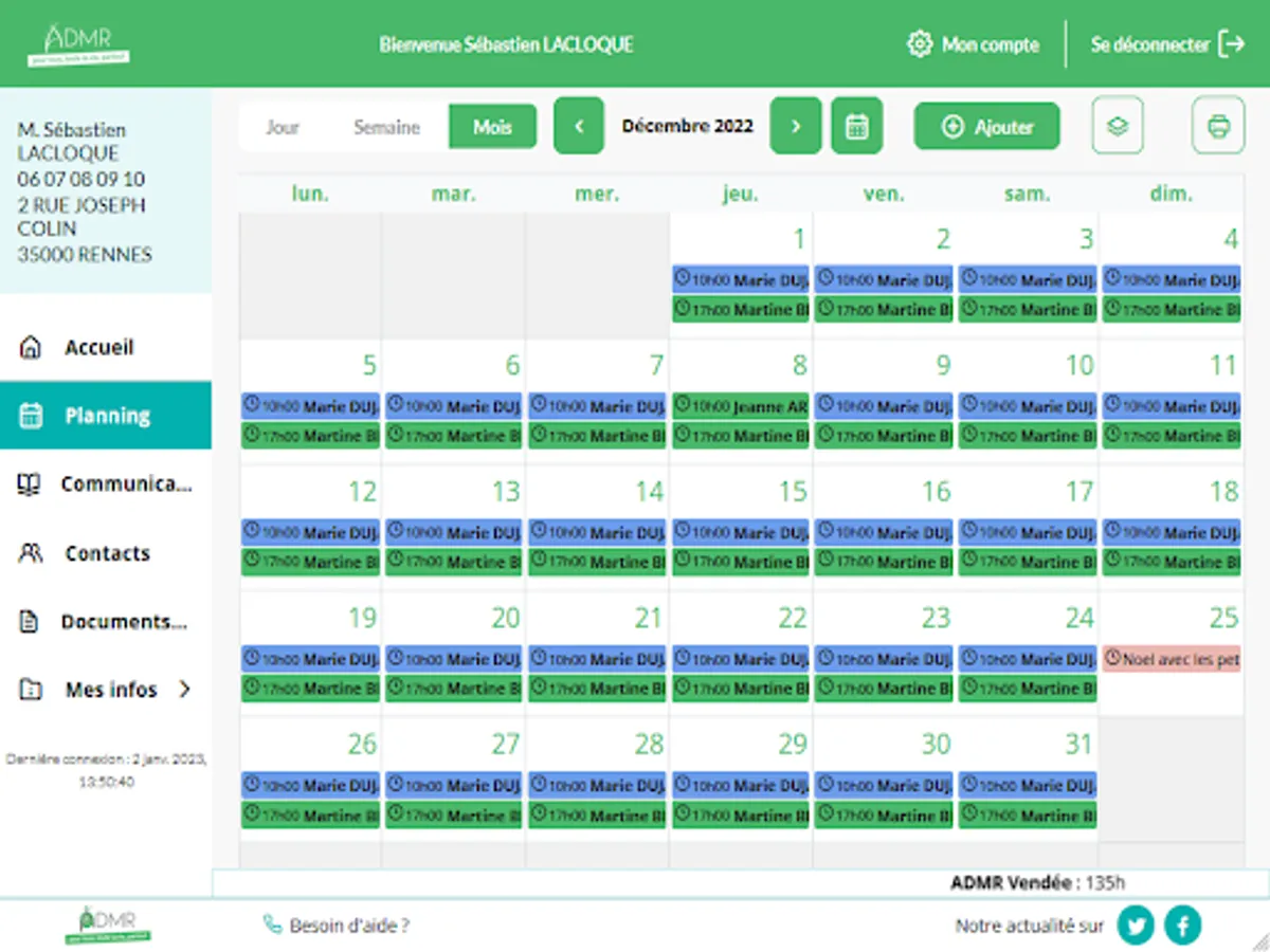 The ADMR Vendée application allows you to view and exchange, in real time, around the interventions planned at the home of the person being helped.