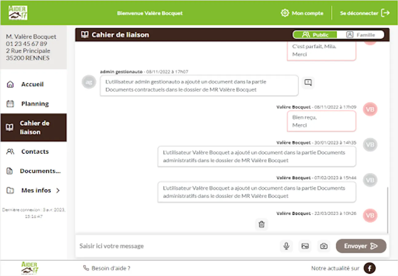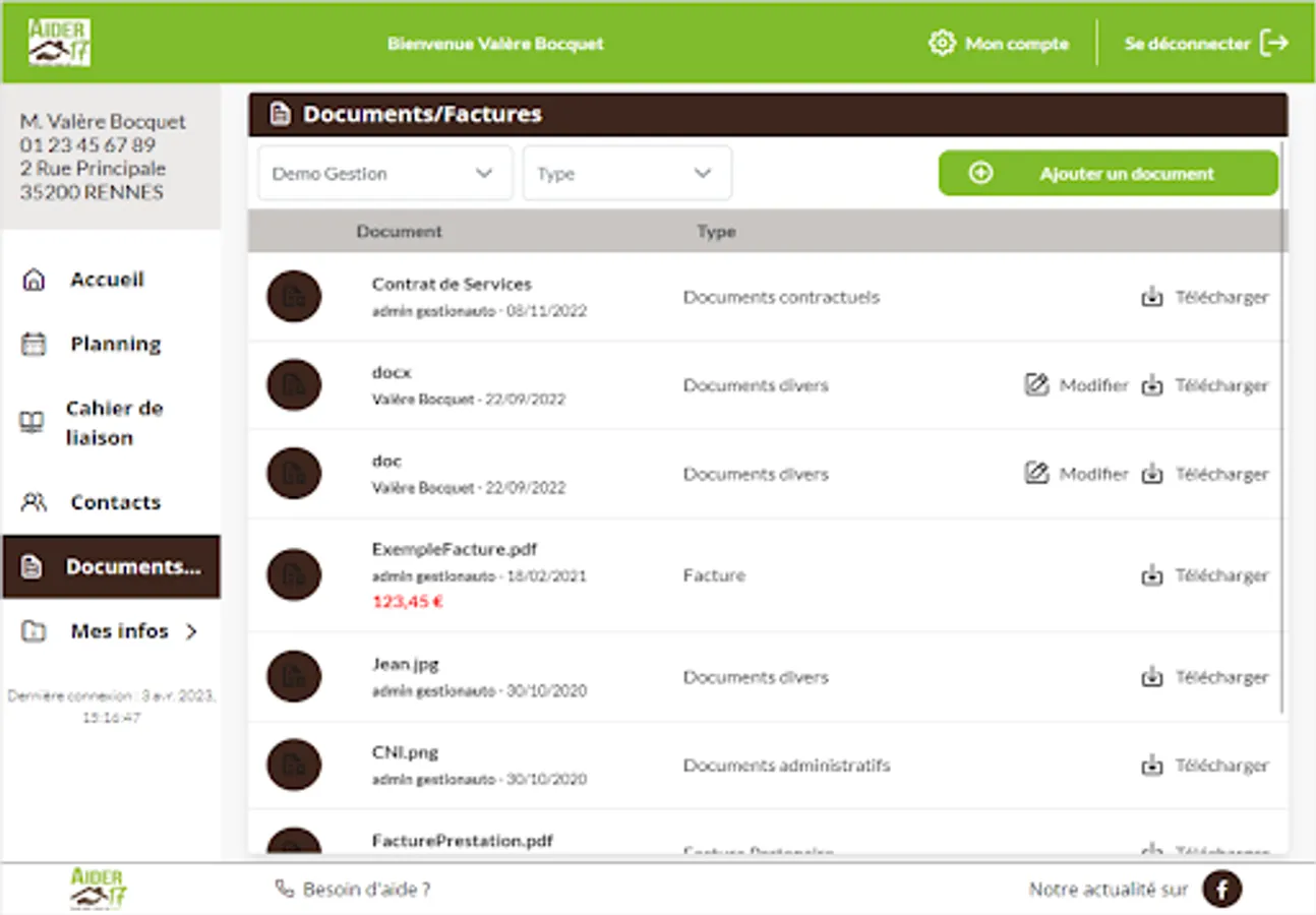 The data deposited in your Aider 17 space is secured on certified servers and hosted on French soil.