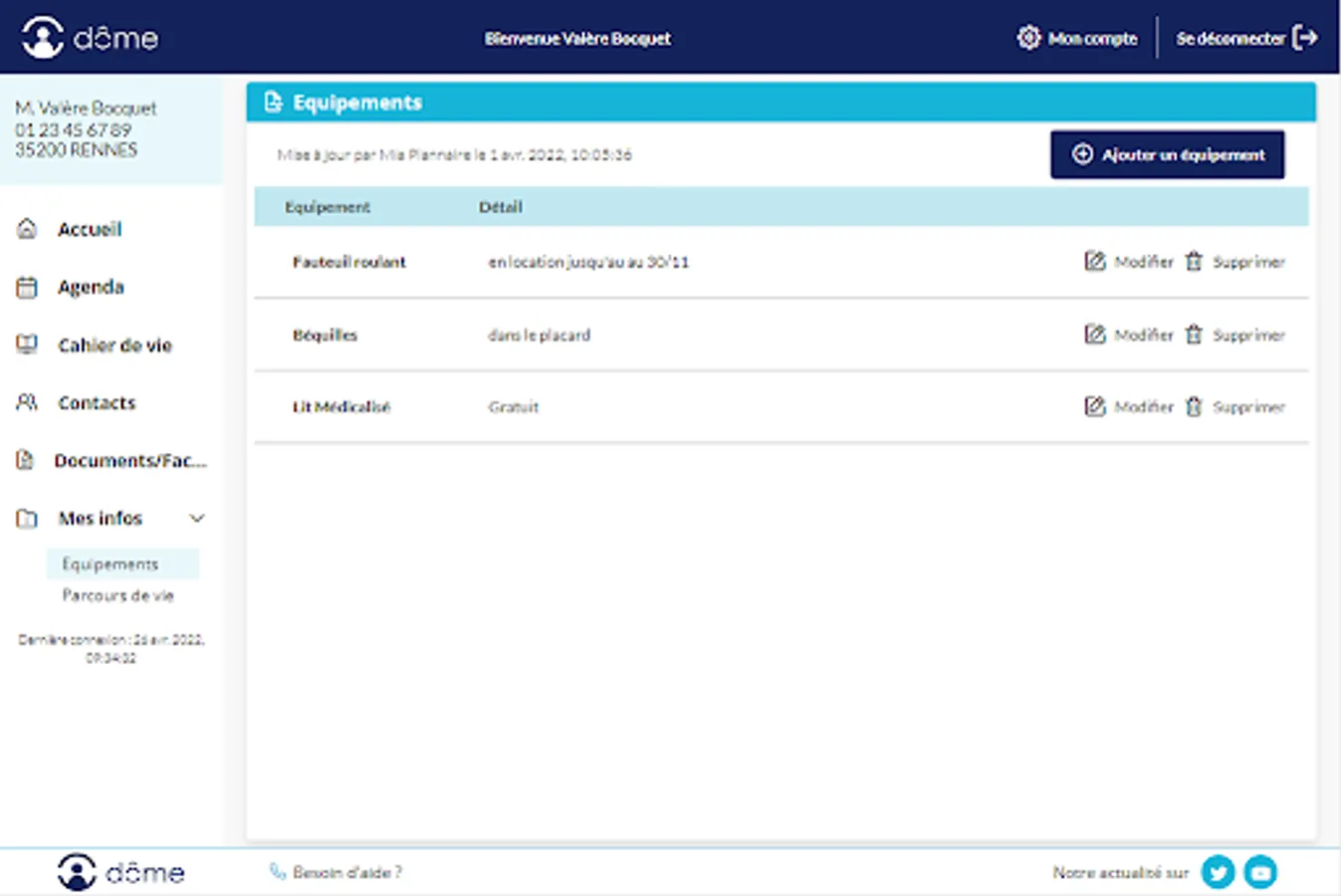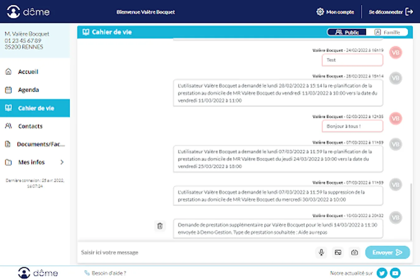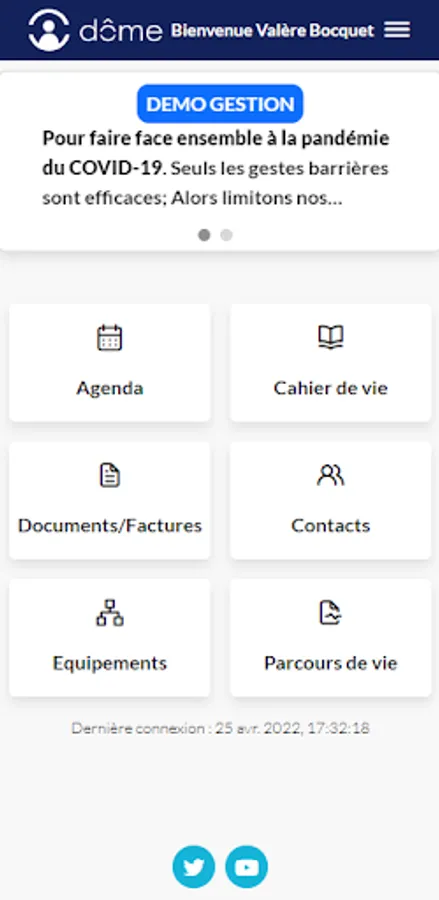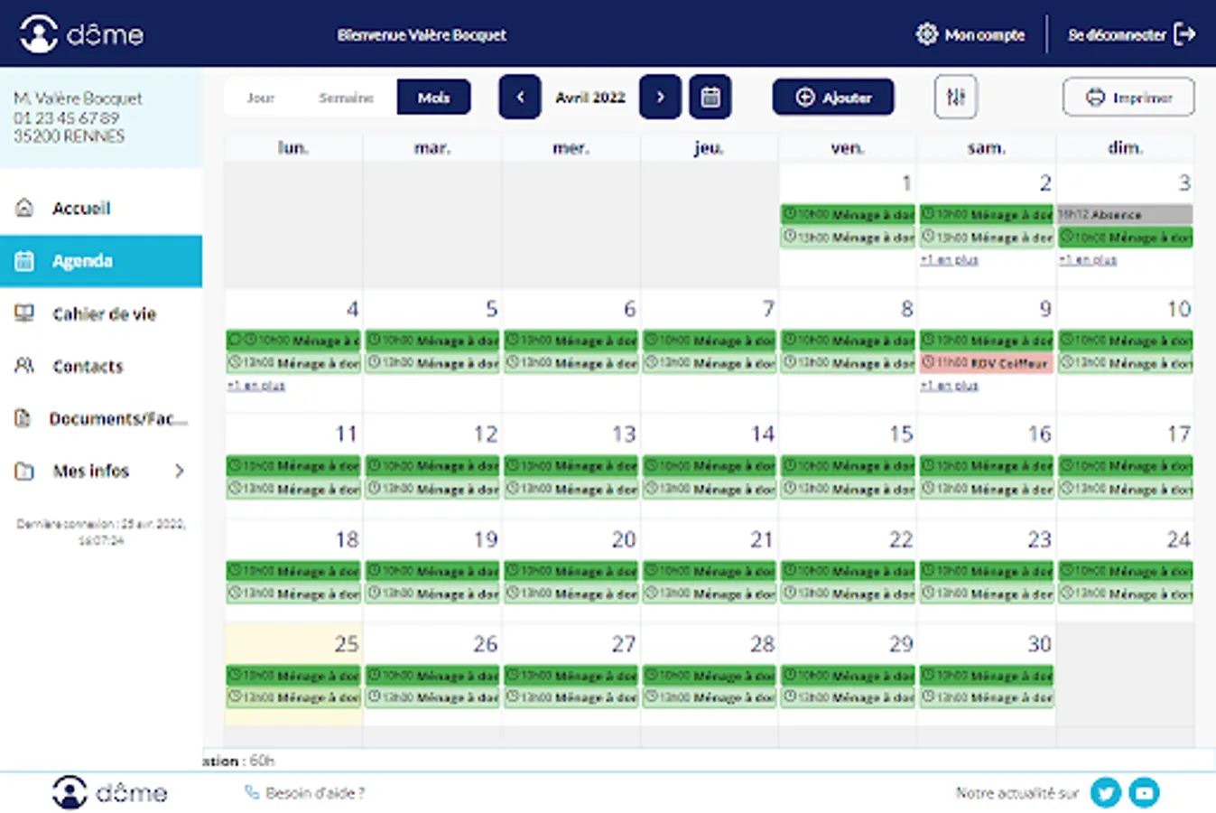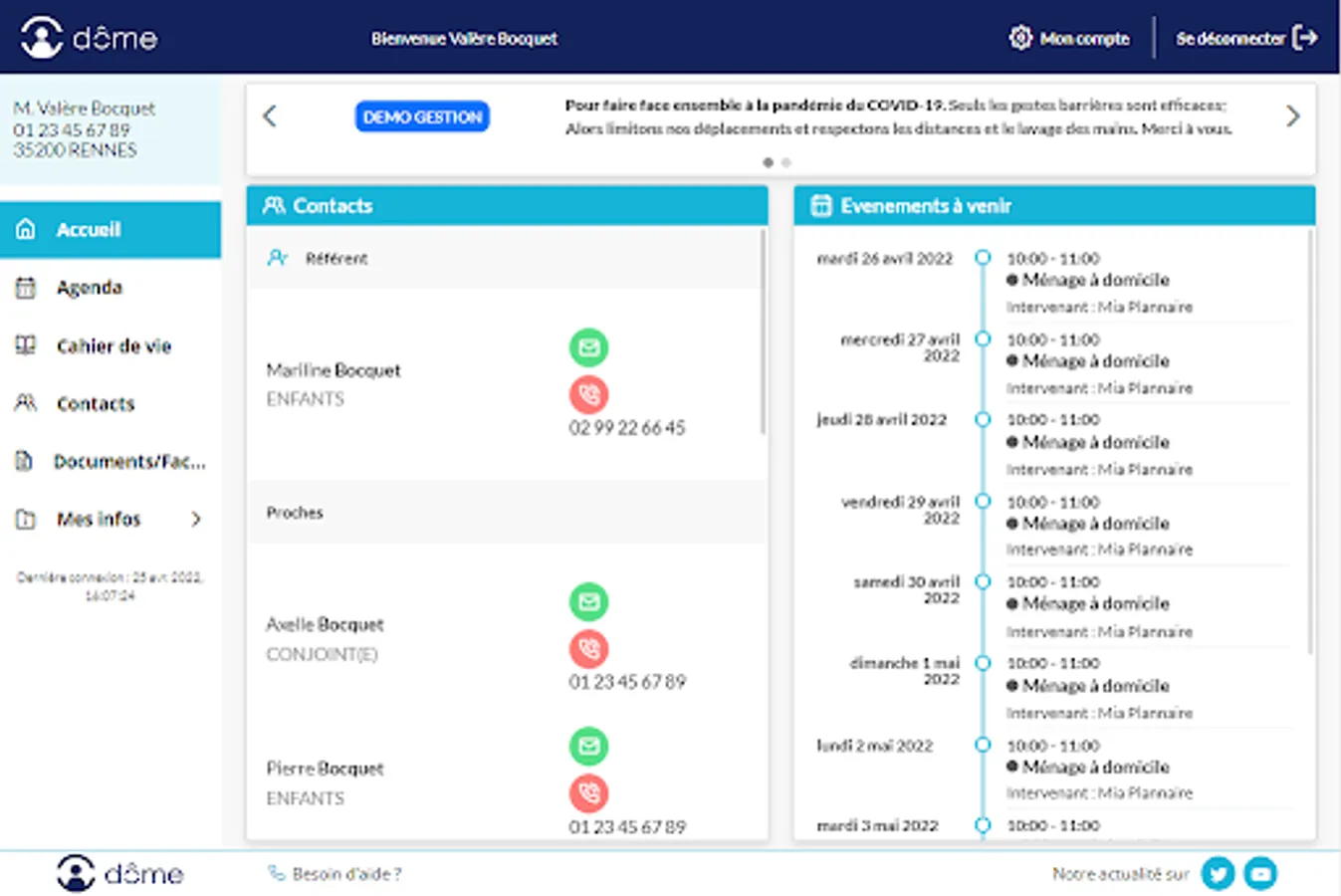 To benefit from all the features of Mon Dôme and take advantage of the discovery offer, contact the personal services structure that supports the person being cared for.
