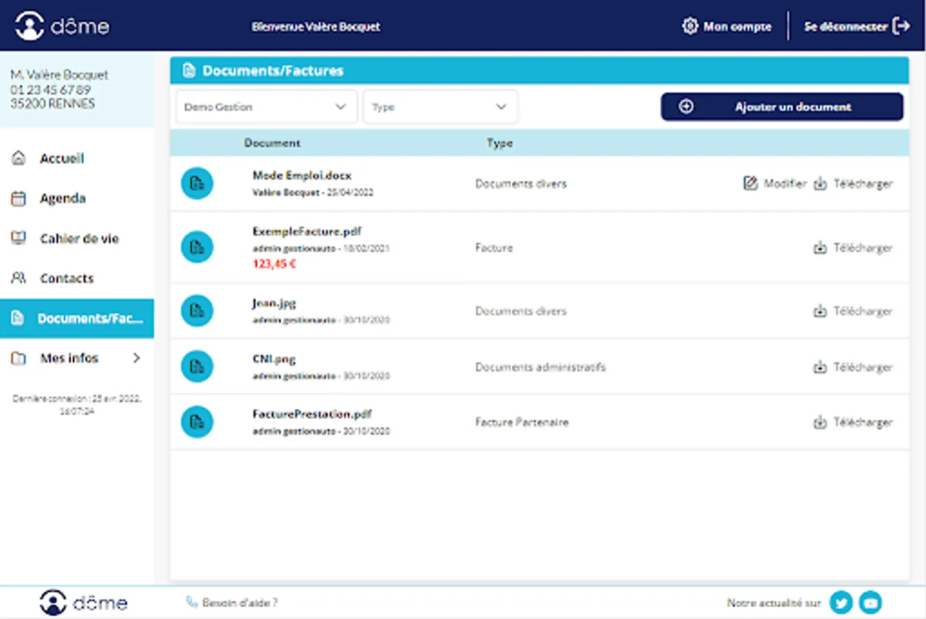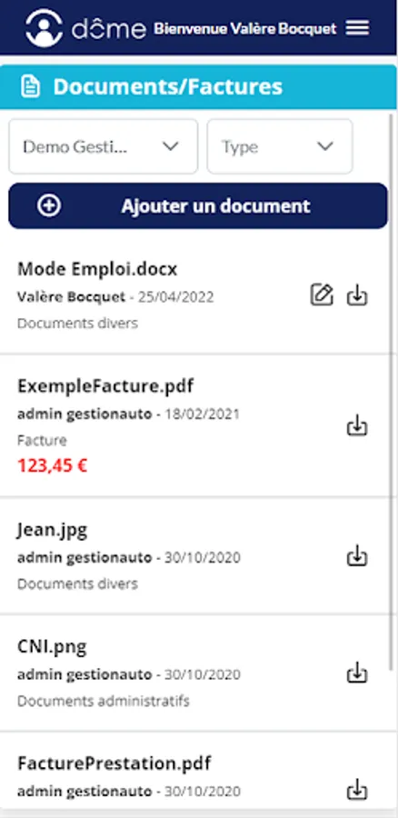 All Documents (Invoices, assistance plan, tax certificates, etc.) are centralized and downloadable at any time.