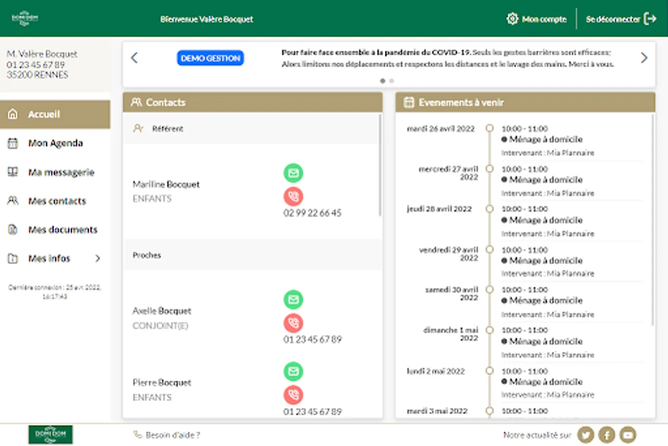 Your DOMIDOM space gathers all the information concerning your services at home to facilitate the procedures and the organization.