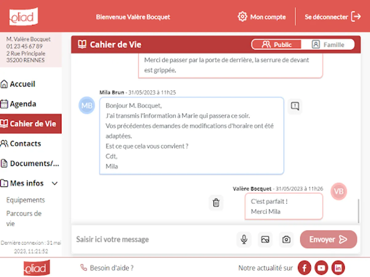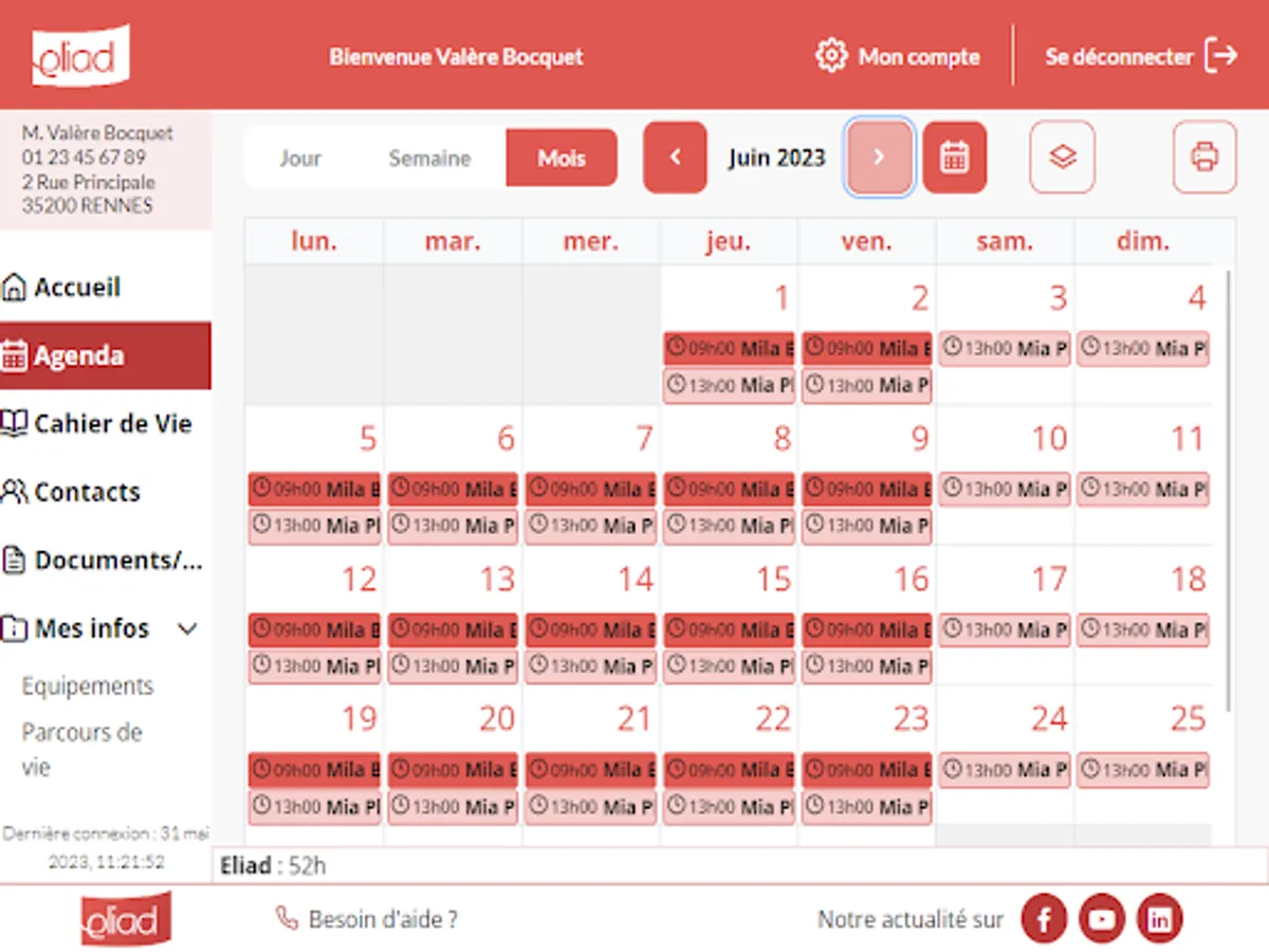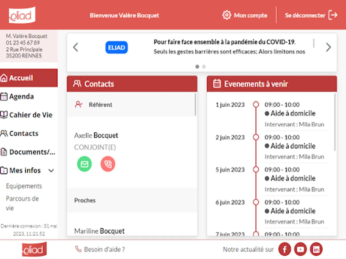The Eliad application will allow you to consult and communicate, in real time, about services, planned or to come, at the home of the person being cared for.