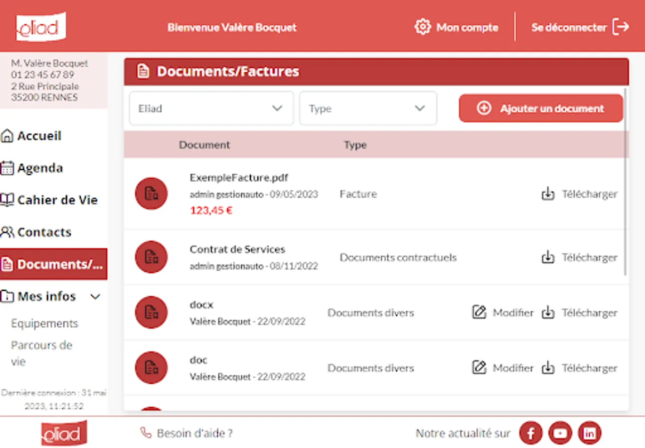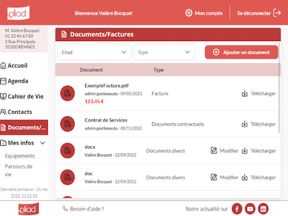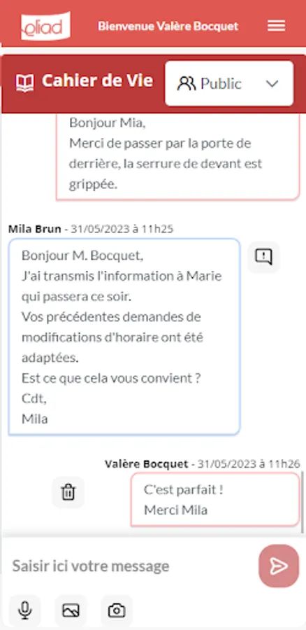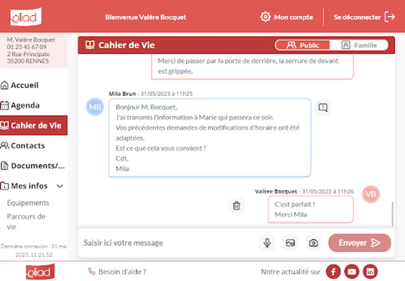The Eliad application will allow you to consult and communicate, in real time, about services, planned or to come, at the home of the person being cared for.