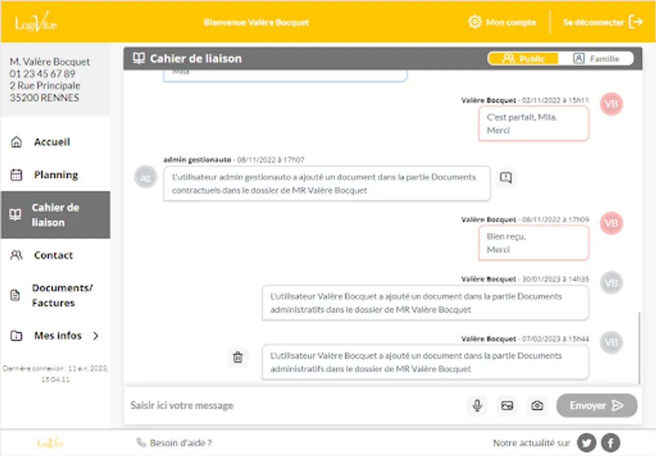 You will also have the possibility to exchange with the administrative and social team of LogiVitae, directly via the application, for any request.