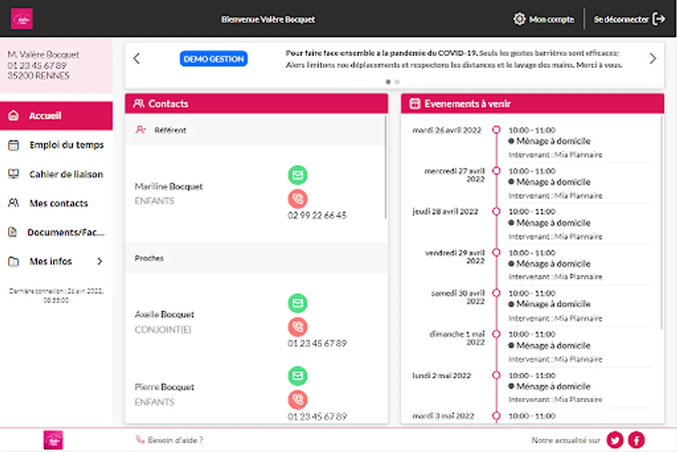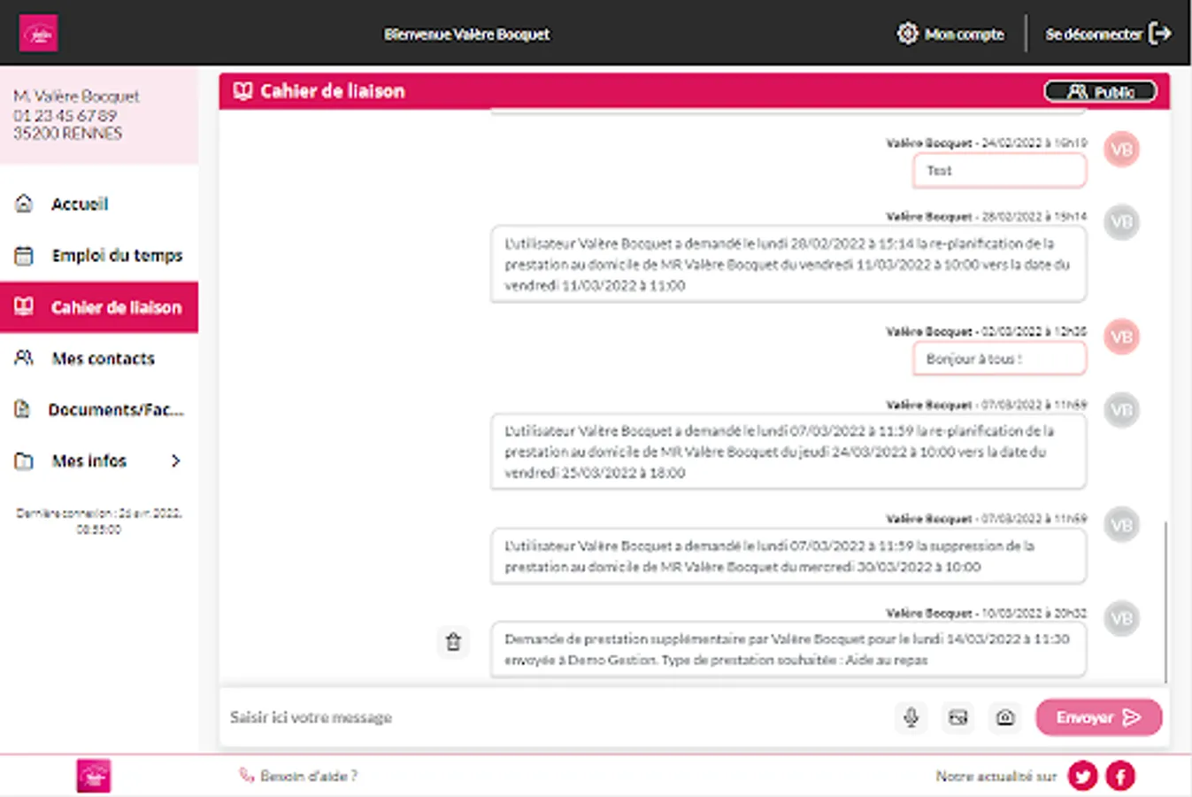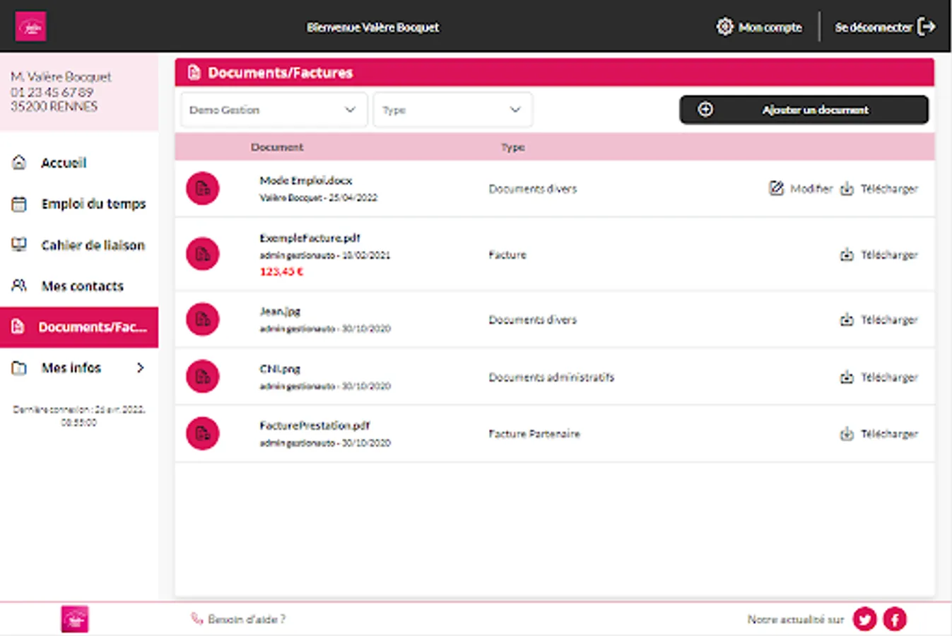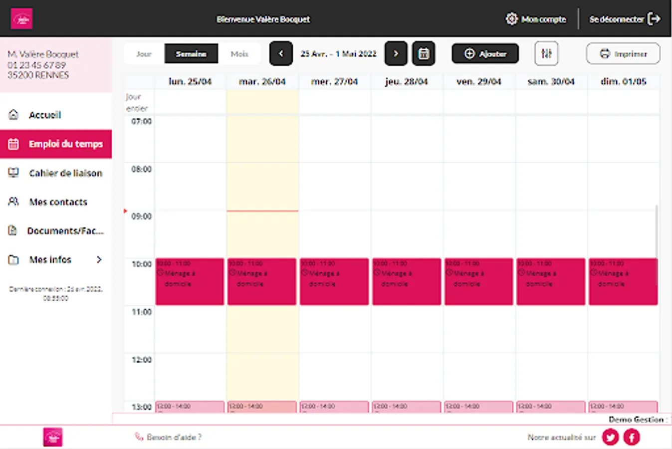 Connect, and have the schedule of interventions, your invoices, your tax certificates. You can also request to modify an intervention by requesting its cancellation or postponement, contact your agency or your practitioner and other features to make your life easier.