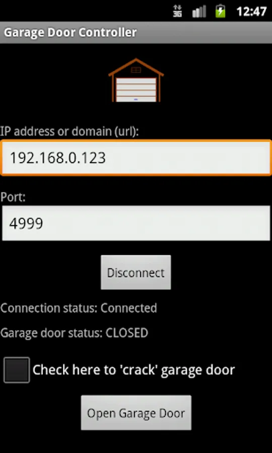 This app works with the hardware device that I developed which allows you to view the status of, and open/close your garage door from anywhere you have Internet access.
