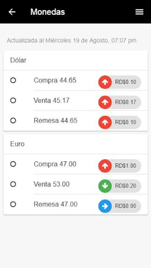 ✮ Consulta del cambio de moneda (Dólar, Euro).