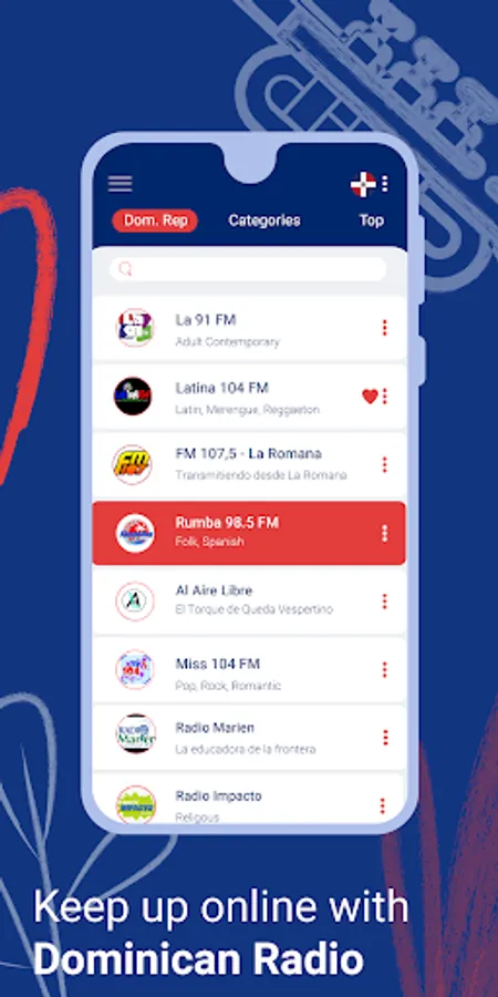 The following Dominican Radio Live FM Player (Free Radio Stations: FM Radio & AM Radio) for Android is programmed to stream broadcasts live from Dominican. Dominican Radio Live FM Player Android Radio allows you to listen and enjoy numerous genres of music such as classical, rock, pop, instrumental, hip-hop, gospel, as well as Dominican songs, talks, comedy, shows, concerts, gospel shows, Dominican national music, Dominican news and other kinds of programs. Due to this Live Dominican Radio Live Internet Radio / Free radio stations: FM Radio & AM Radio app (Dominican streaming) you are enabled to enjoy all the types of music as well as entertaining and informative Dominican programs, songs, live Dominican News and other streaming. You will be aware of what is going on in Dominican by listening to our Android radio Internet Radio / Free radio stations: FM Radio & AM Radio app streaming and broadcast live.
