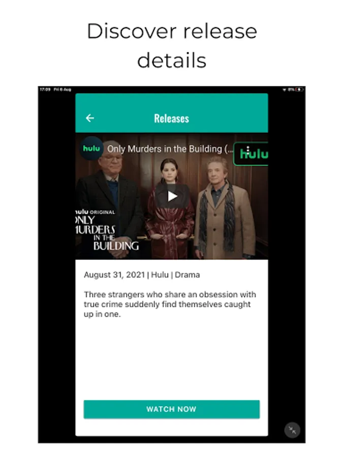 321 Stream is the only app that provides access to the up-to-date schedule of upcoming releases on streaming platforms.