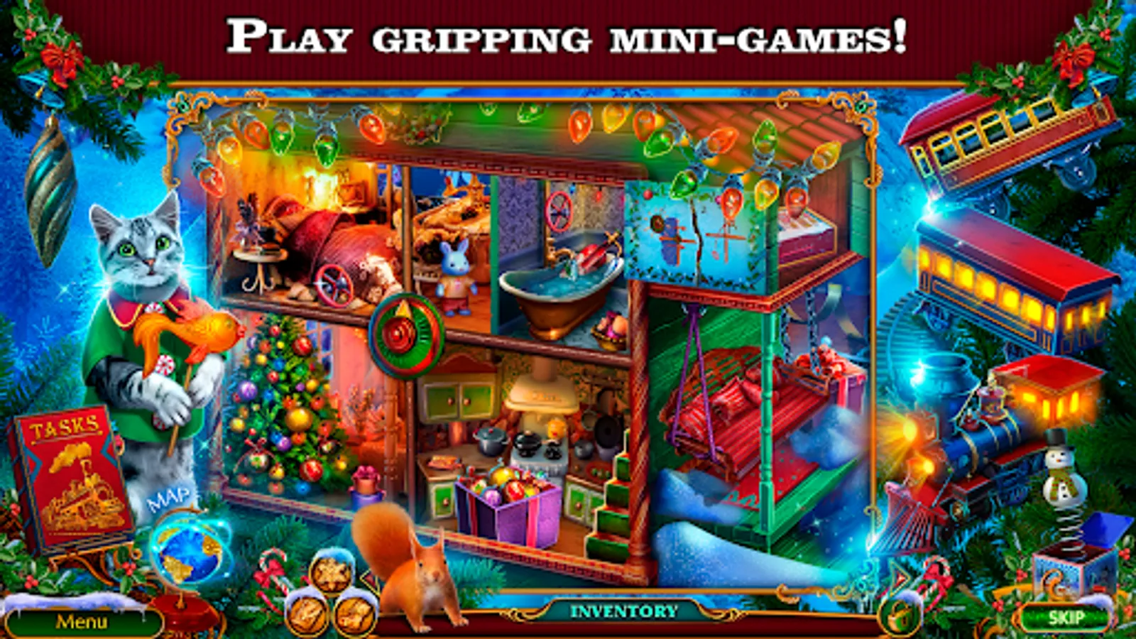 After you play through the main Сhristmas story of our point and click quest, you can embark on a new big adventure in a bonus game! Don't let the Xmas spirit go out in the hearts of adults and children! Catch the enemies of Christmas who are stealing things! You’ll need all your wits and courage!