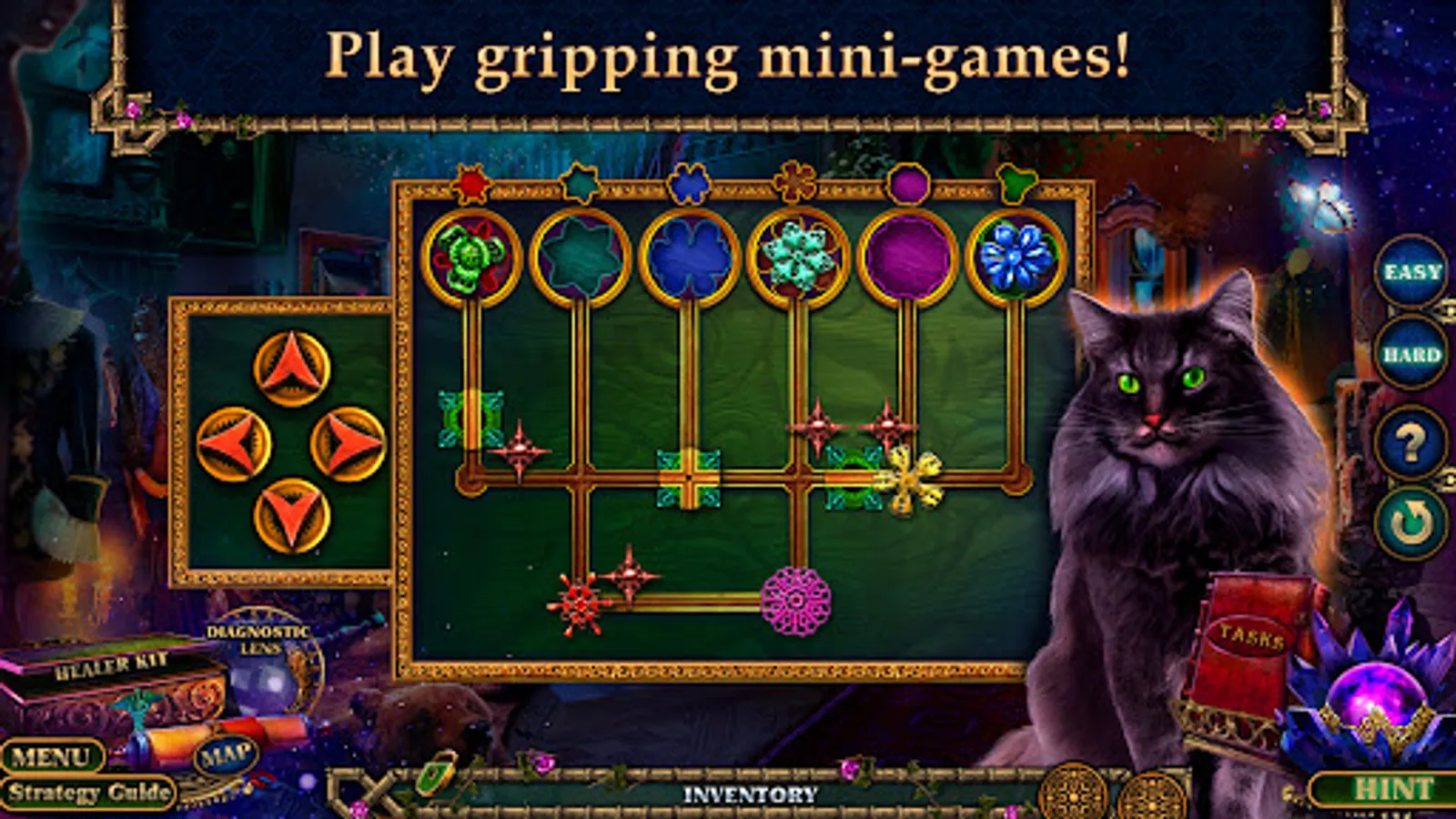 While playing this seek and find hidden objects game and solving mysterious puzzles, you will also be gathering beautiful and shining crystals to equip your Medico Imperium Healer Laboratory!