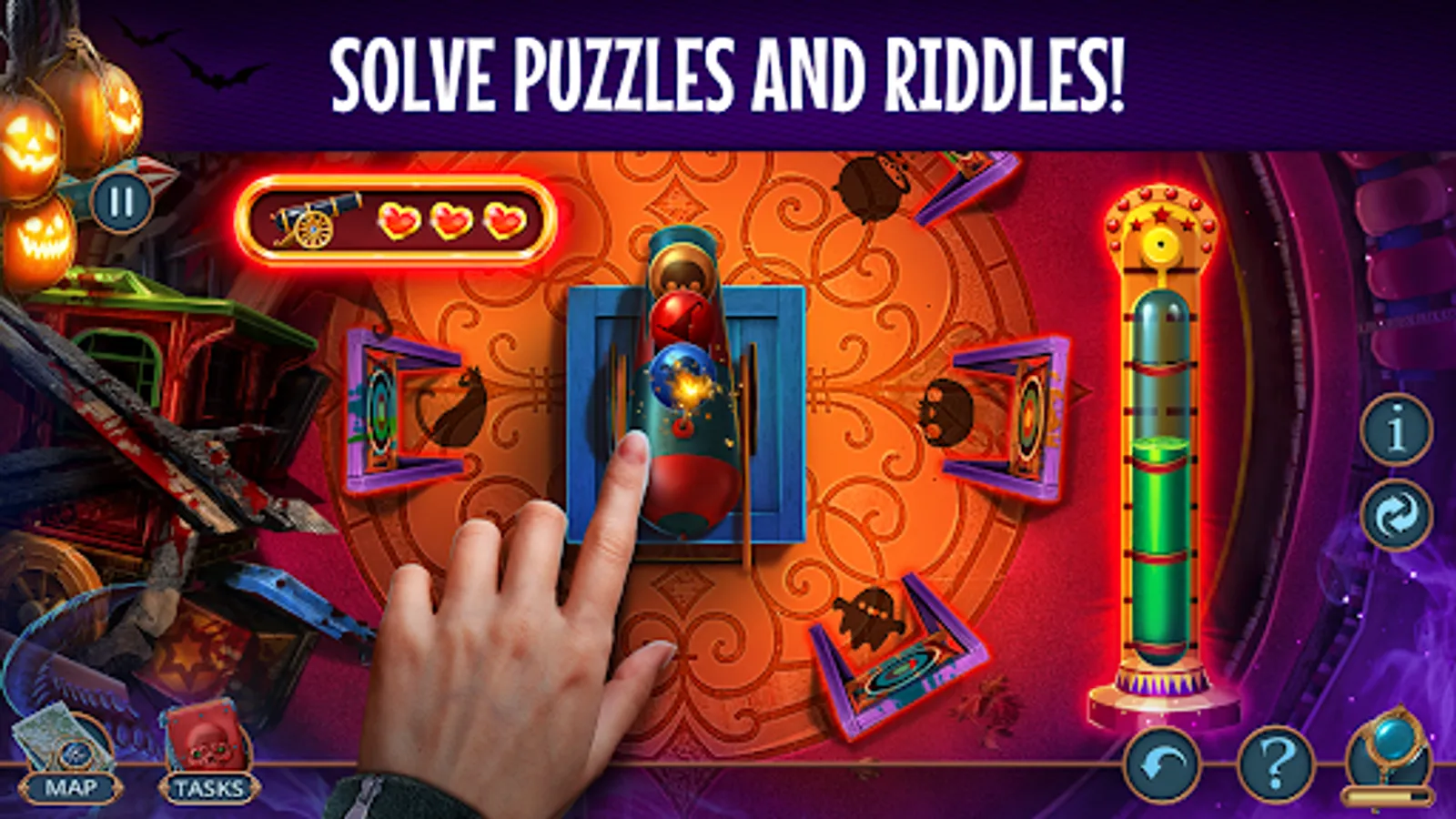 The famous traveling circus is coming to Seattle this Halloween! Real monsters will act on the stage β and your sister Annabelle craves to see them! When the show gets started, Annabelle goes to the stage as a volunteer to perform a disappearing act. But suddenly the circus tent starts burning β you lose sight of Annabelle in the crowd and get stuck in the tent. As you get out of there, you try to find your sister... but the circus owner doesnβt want to let you go! Save Annabelle by defeating monsters and finding hidden objects in the world of nightmares!