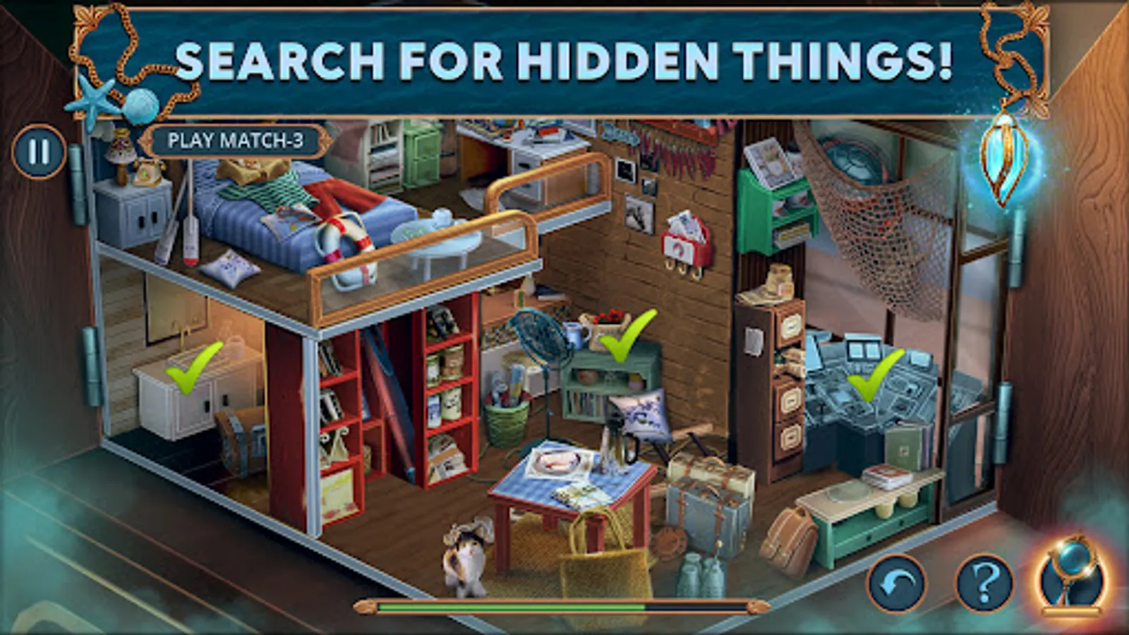 Captain Reed has kidnapped the one person who can destroy him. Can you find them in time? The supernatural investigation continues with the riveting episode “Enchanted Song” from the “Mystical Riddles Season 1” detective adventure games series! Continuing this journey you will seek and find out hidden objects, solve mystery puzzles and play hide and seek games! Go on a search for the person so you don't become a slave to Captain Reed. Defeat Captain Reed!