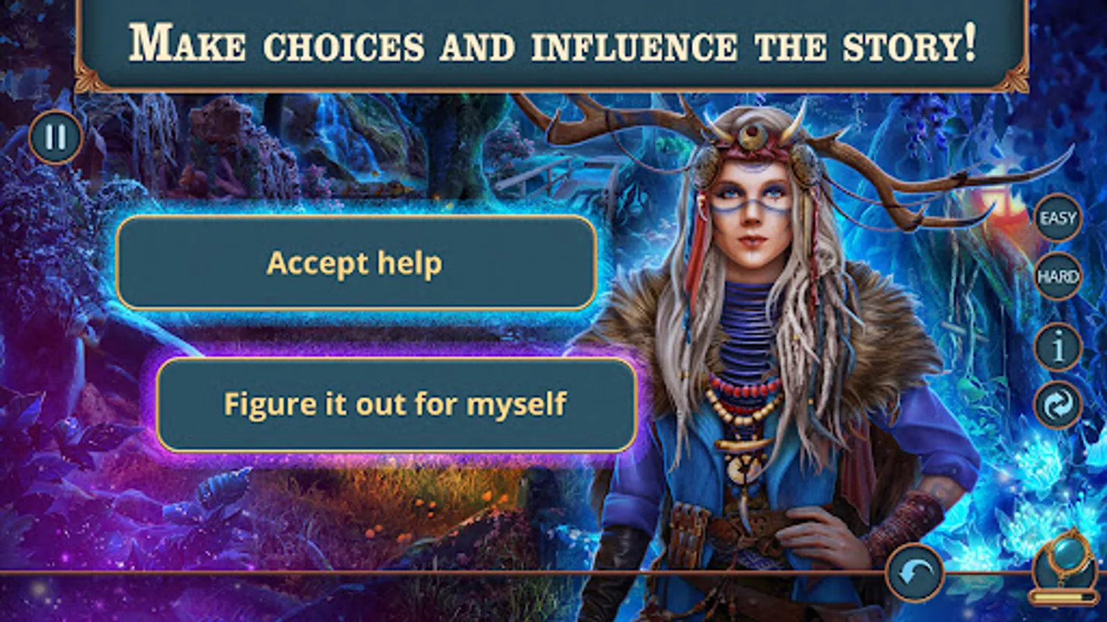The riveting adventure quest is full of beautiful wallpapers, charming music and exciting videos. A wondrous forest, picturesque locations with hidden objects and unique magical creatures are waiting for you in this visual novel!