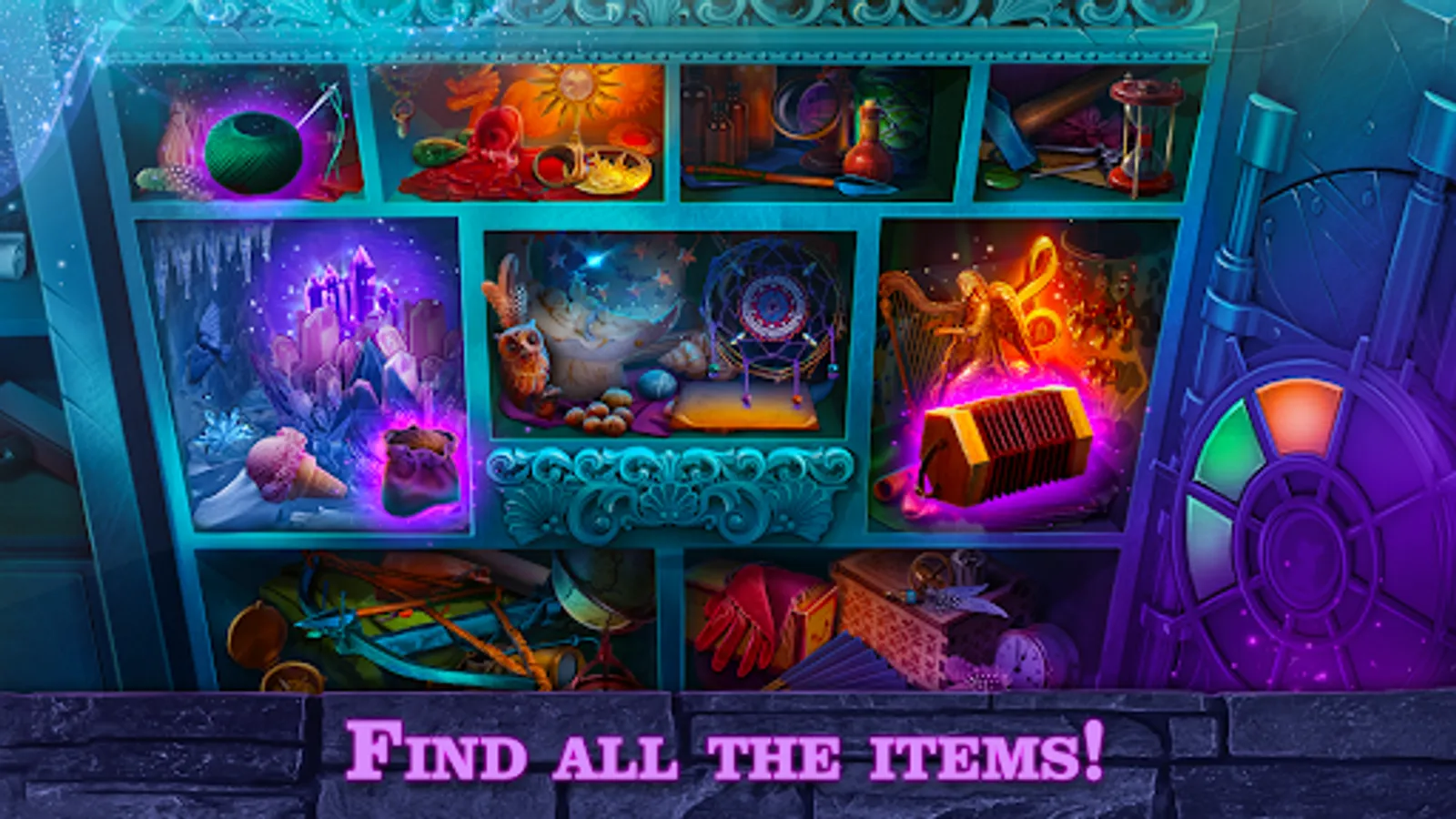 Look for cleverly hidden objects and gather them all to learn about unique magical artifacts that were stored in the Secret City Bank of Artifacts! Gather special currency to buy unique items for your room! It’s like a little shop inside a game!