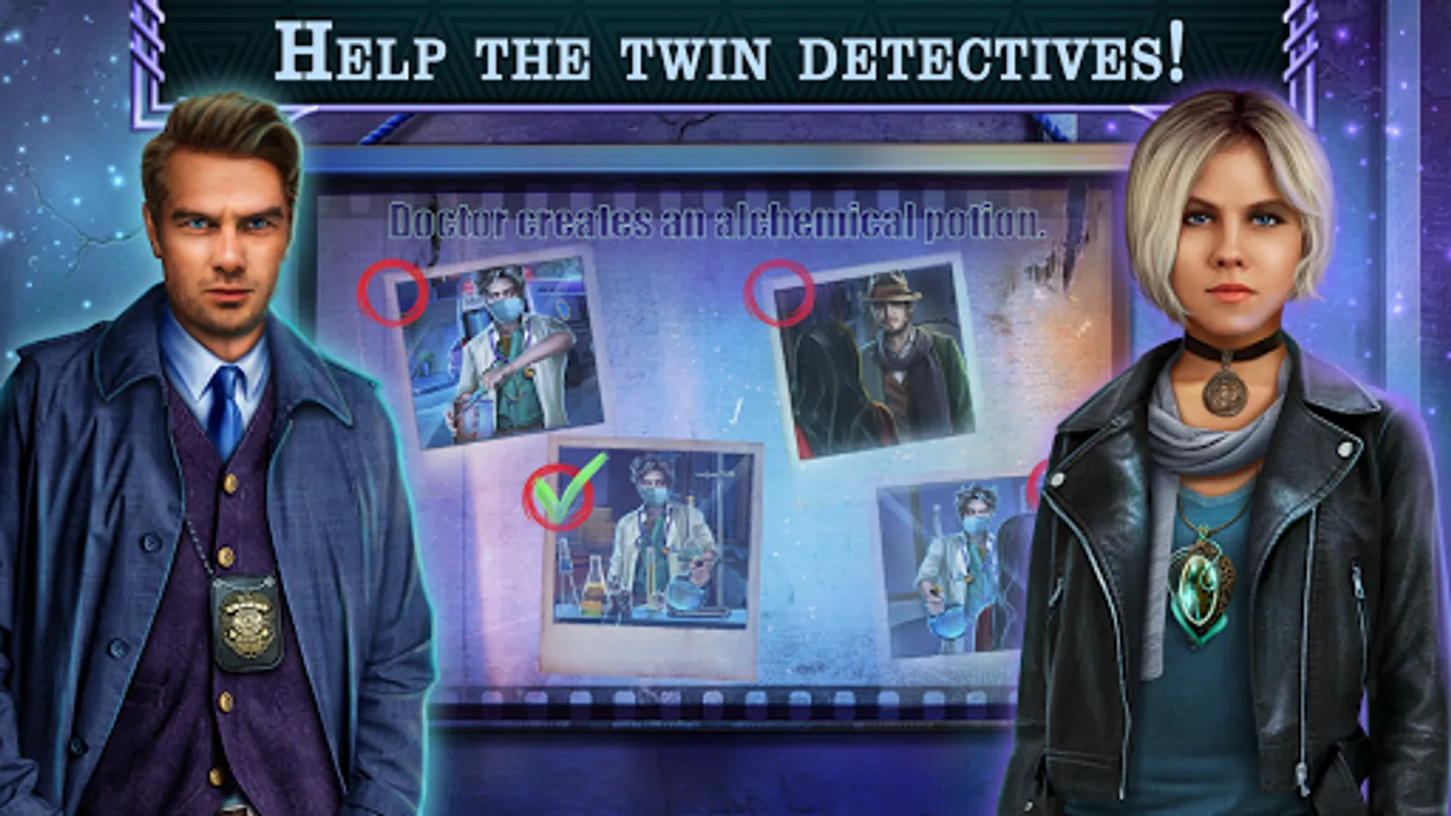Twin detectives Randall and Eleanor Jones share a passion for justice, but their methods couldn't be more different. He's the logical, deductive type, while she uses a mystical approach, but they'll need to combine their skills when they're called in to investigate an onstage murder at the local theater! And once they dig into the victim's past, they discover that nothing about this case is as simple as it seems! Gather your wits and wisdom to help Randall and Eleanor get to the bottom of one of the strangest cases you've ever experienced in this mystifying new Hidden-Object Puzzle Adventure!