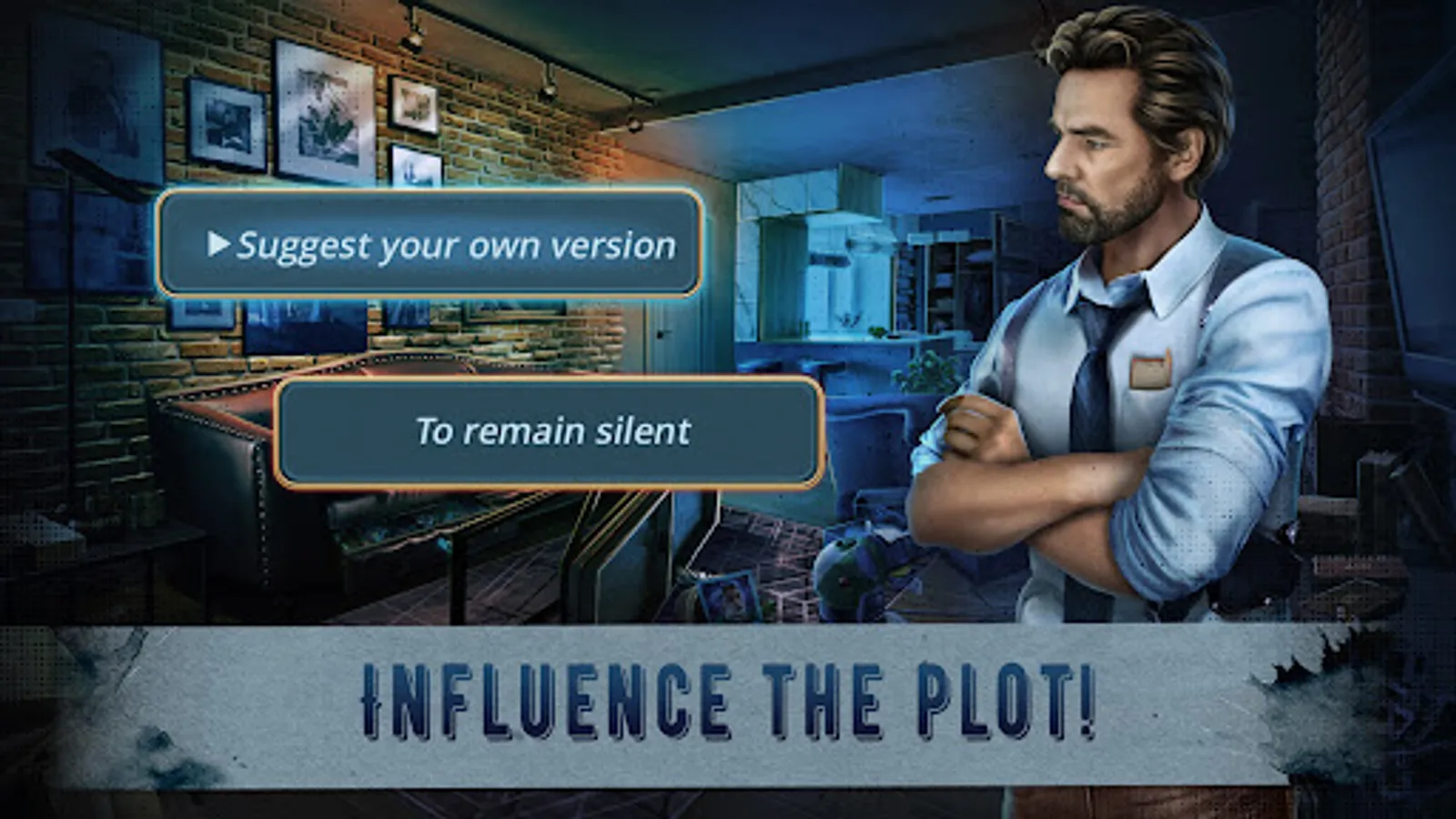 You have the opportunity to choose the character's phrases for a particular action and influence the plot of the detective adventure. Don’t forget that only your choice defines the course of this complex crime investigation and could affect the characters' lives!