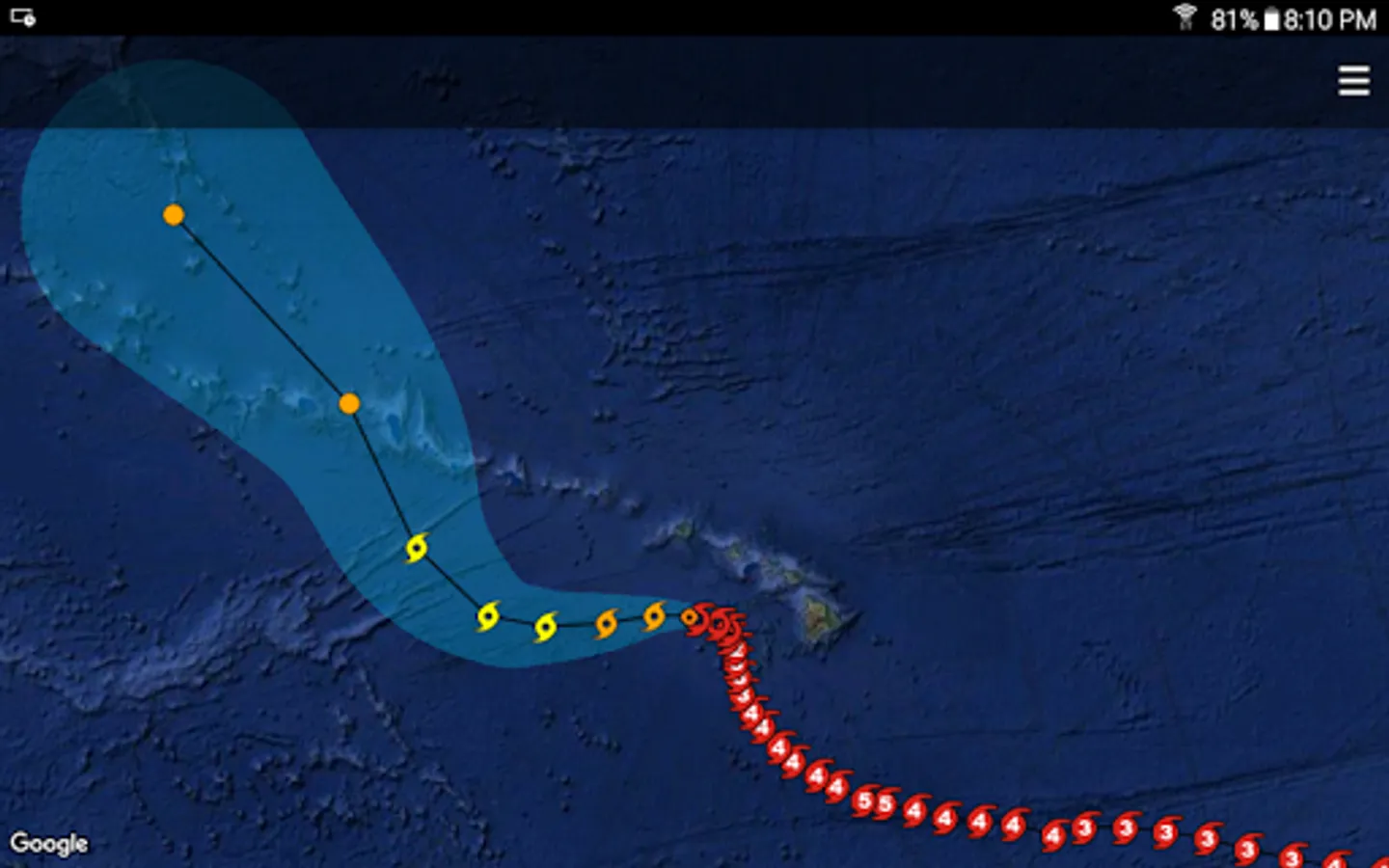 - Option to show storms as "Track and Cone", "Best Track", "Combined" or "Track Model".